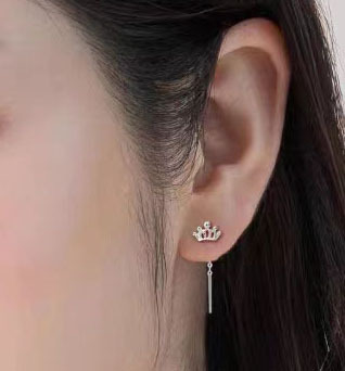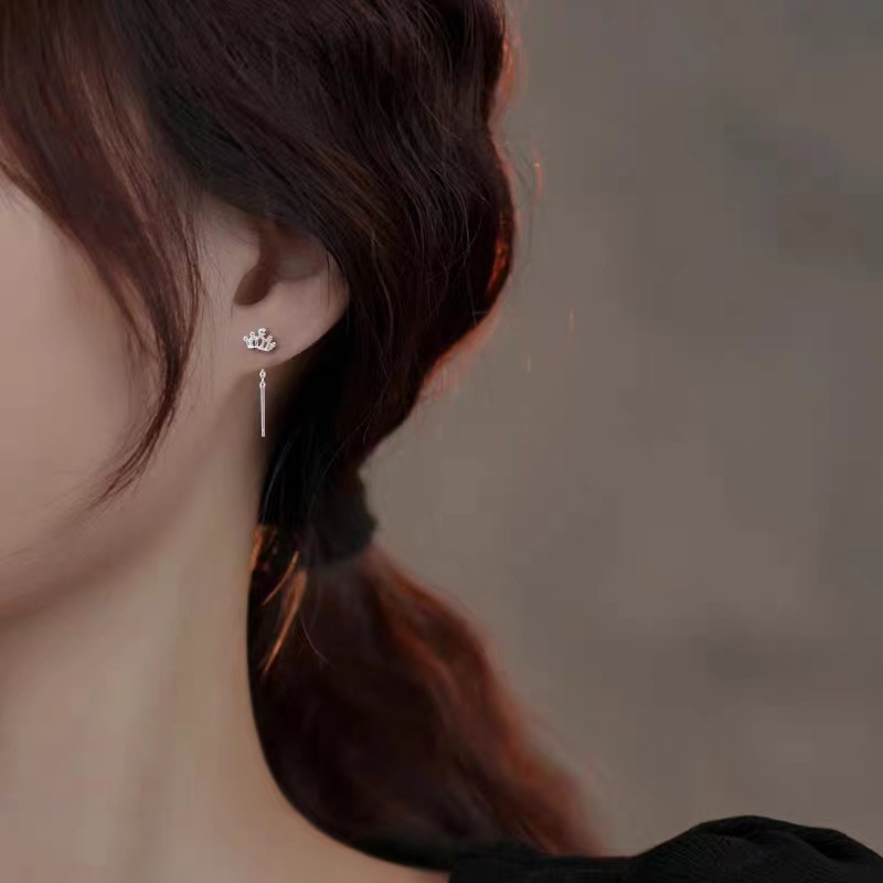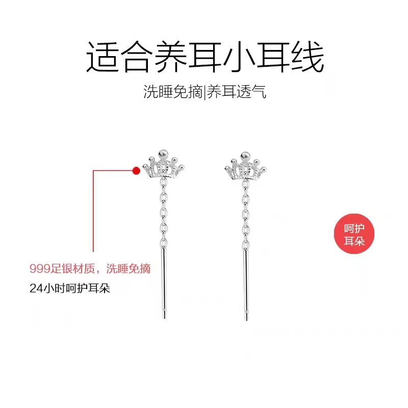 S999足银皇冠耳线女轻奢小众设计简约耳环养耳洞洗睡免摘耳骨耳饰