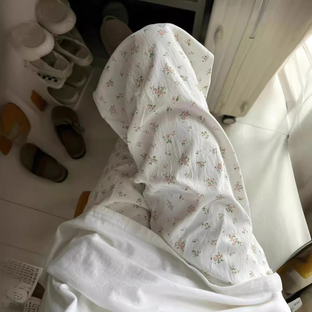 韩系碎花白色休闲裤子女夏季新款宽松直筒慵懒垂感遛弯阔腿裤