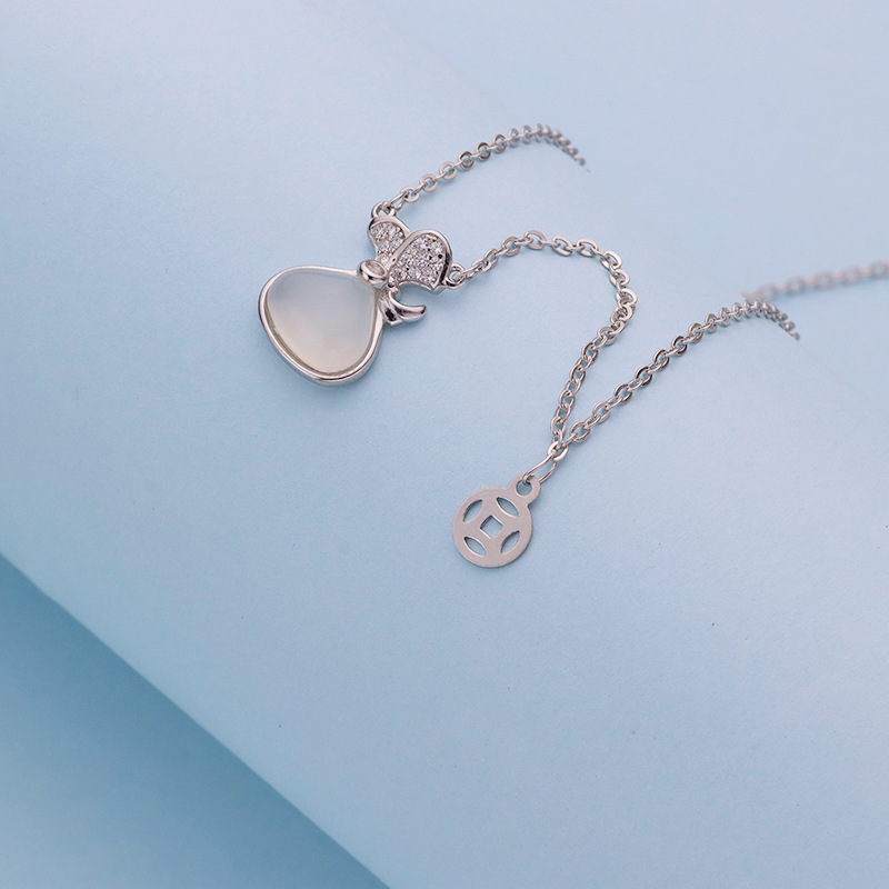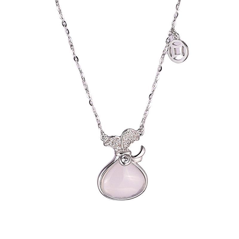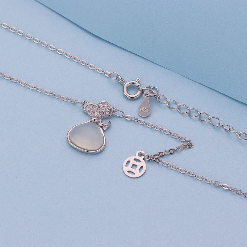新款s925纯银项链女 小众设计感项坠玉髓气质钱袋吊坠福禄锁骨链