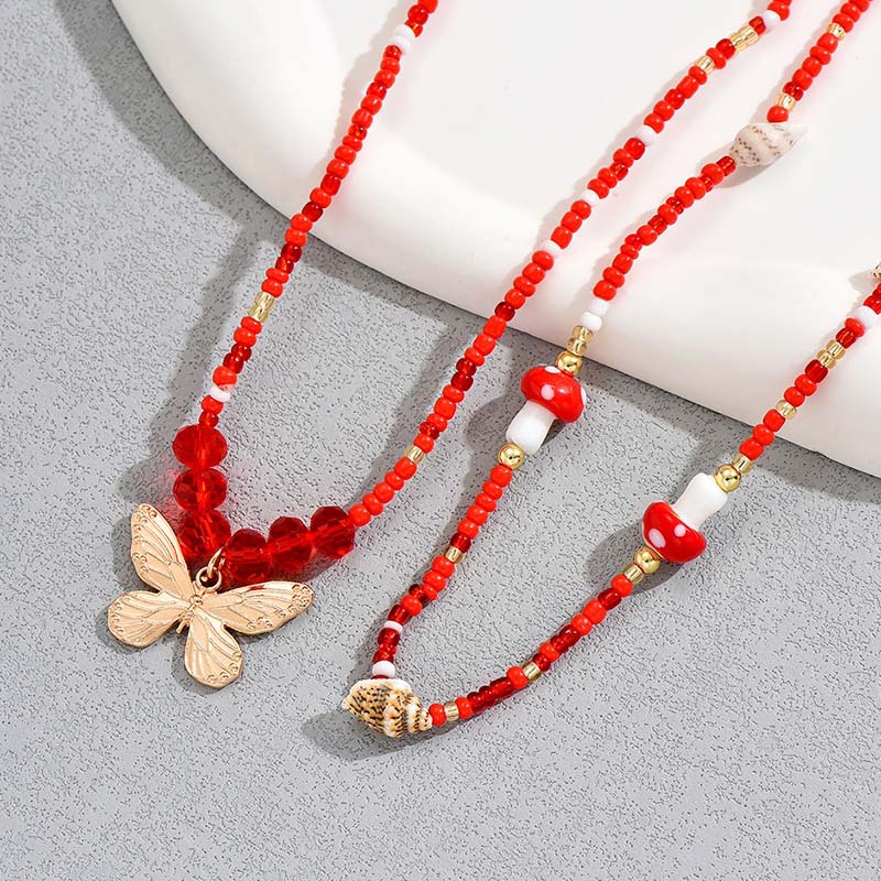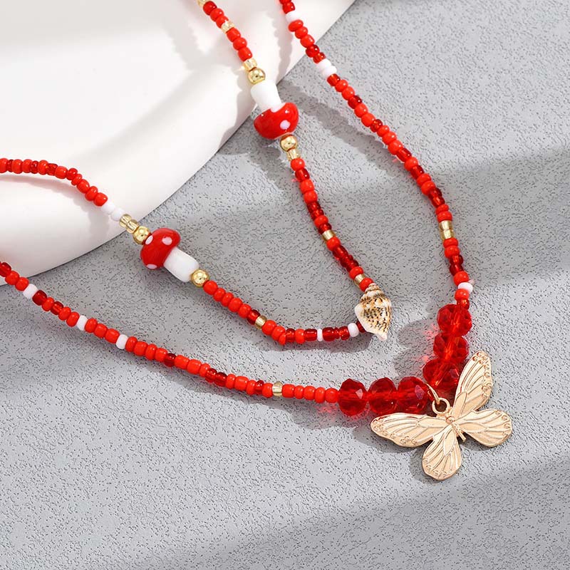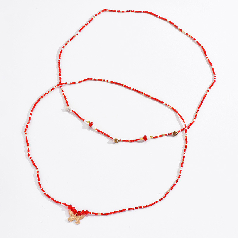 欧美简约编织米珠多层蘑菇蝴蝶腰链女士2条 ins性感度假身体链