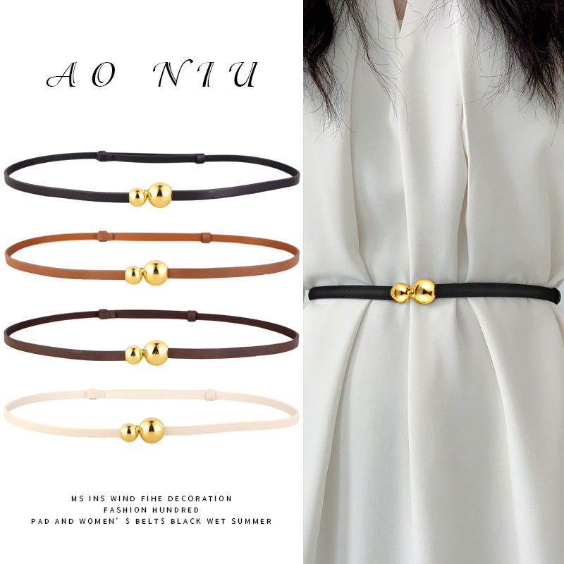 新款真皮细腰带女士小葫芦对扣休闲百搭装饰配连衣裙