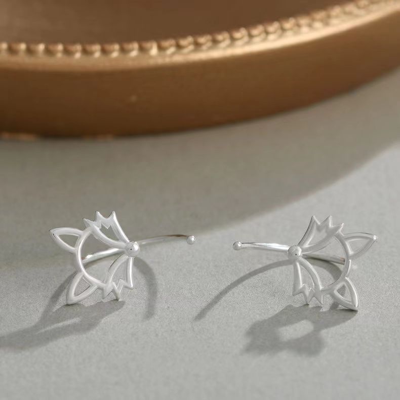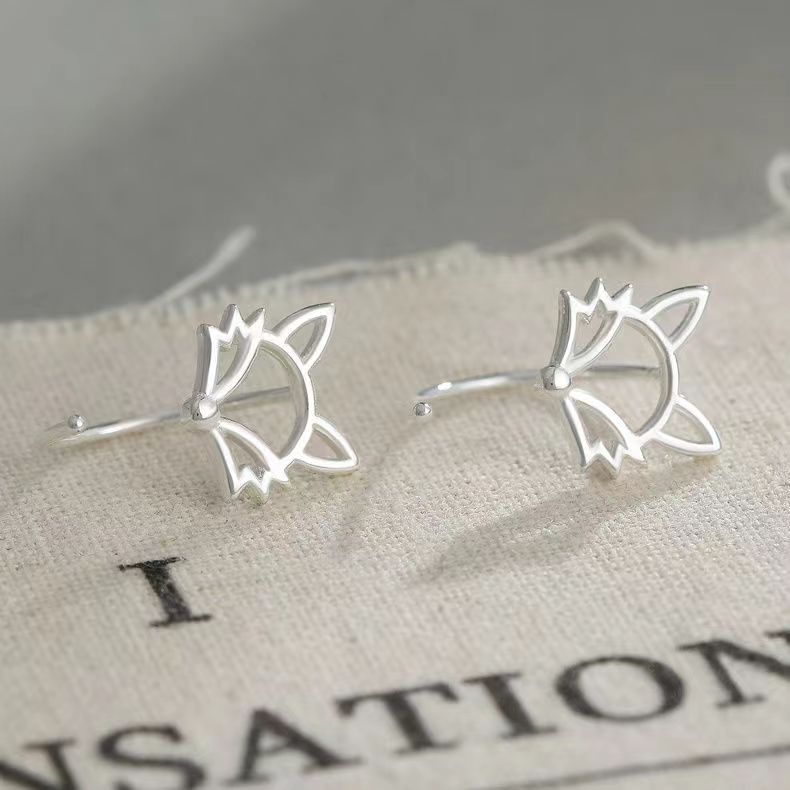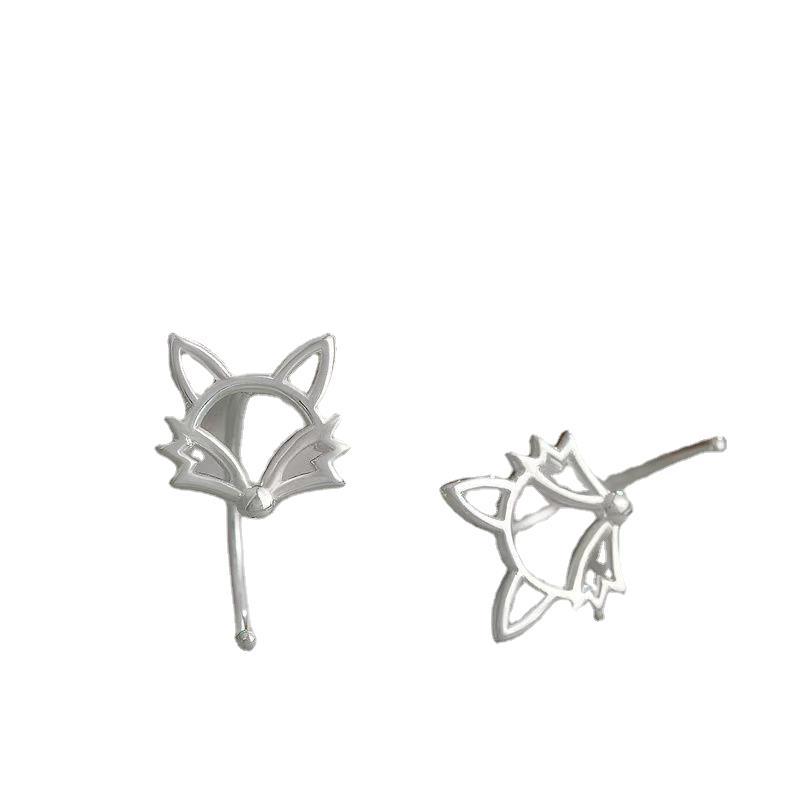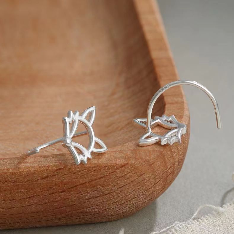 S999足银镂空狐狸耳钩女小众设计简约纯银养耳洗睡免摘耳环耳骨钉