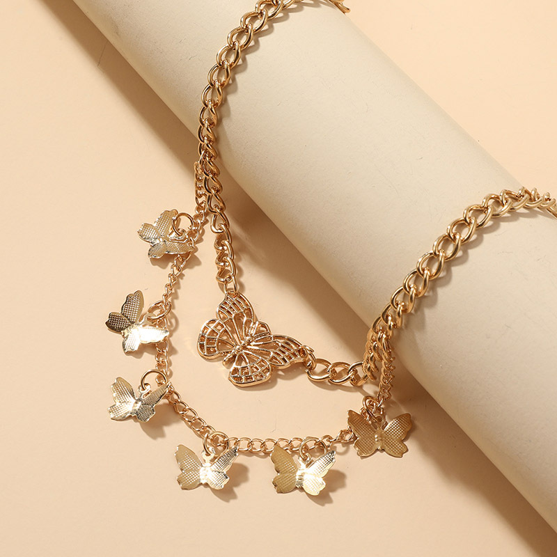 欧美ins简约镂空多层蝴蝶臂链女 潮流个性链条几何身体链