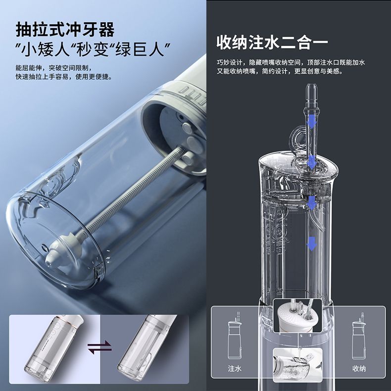 2023新款3档15种模式水牙线洁牙洗牙器 家用便携式手持抽拉冲牙器