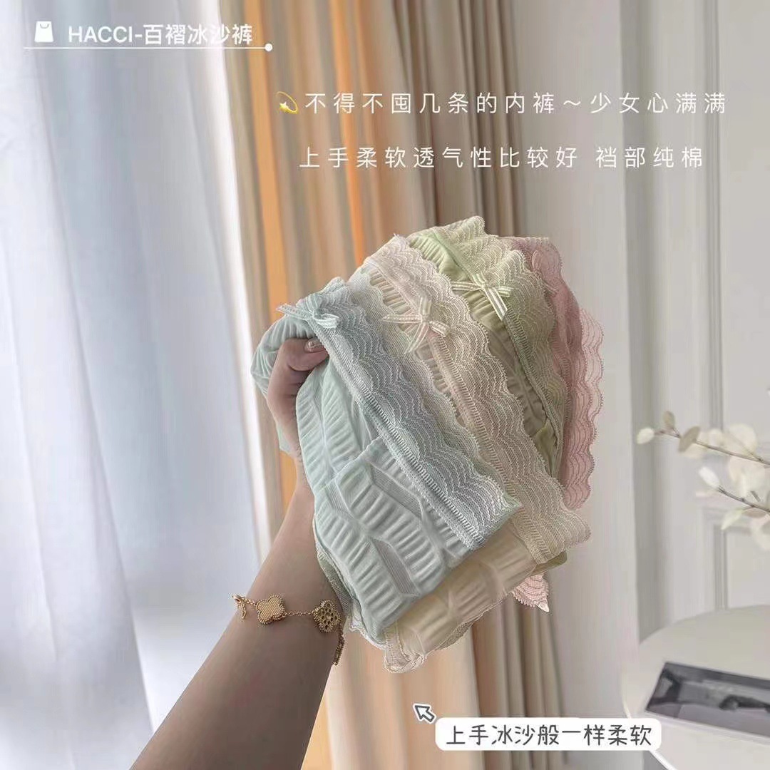 海盐泡泡纱柔软舒服镂空透明性感横条纹少女INS风内裤女三角蕾丝