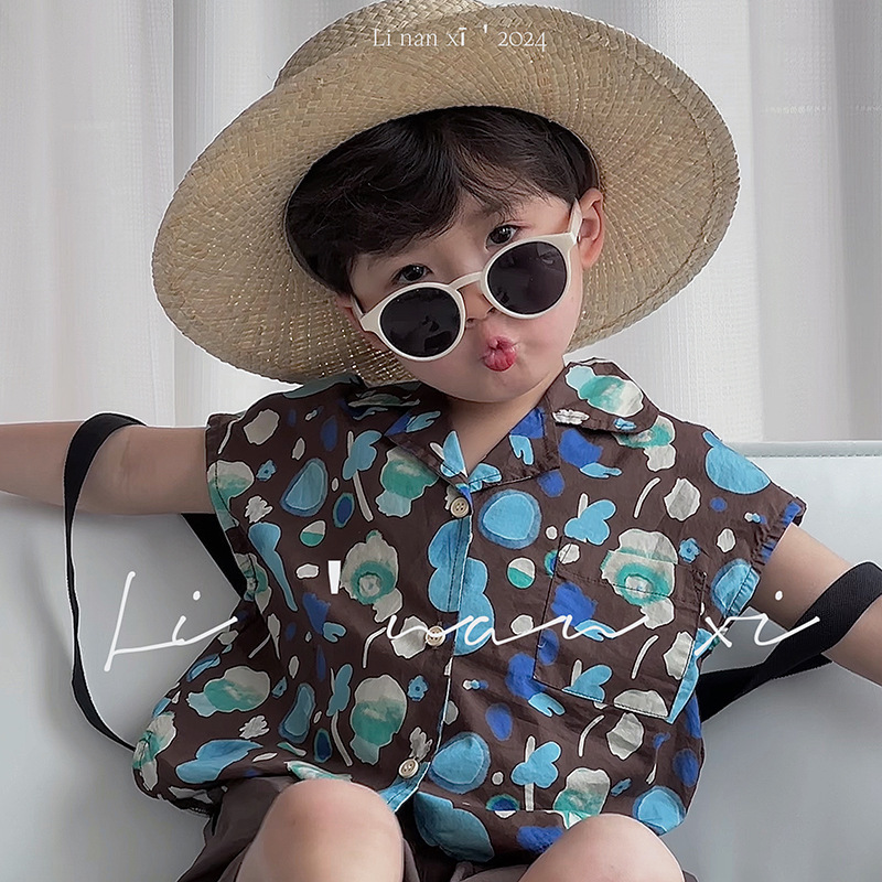 24夏季新款儿童无袖落肩衬衣全棉3-8岁儿童宝宝印花上衣
