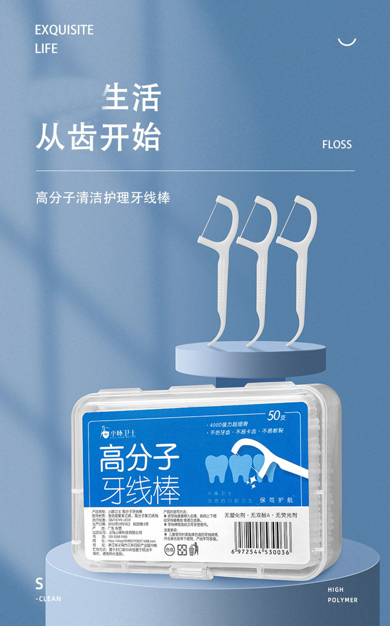 高分子牙线棒 50支盒装清洁口腔护理扁线弓形牙签线剔牙棒牙