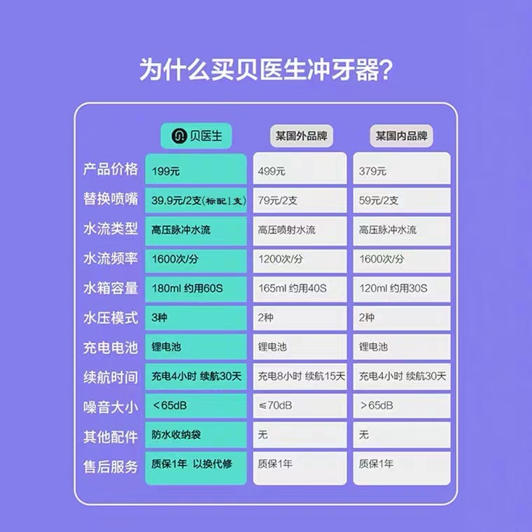 贝医生冲牙器洗牙器清洁牙缝便携式真畸清洗水压线一盒