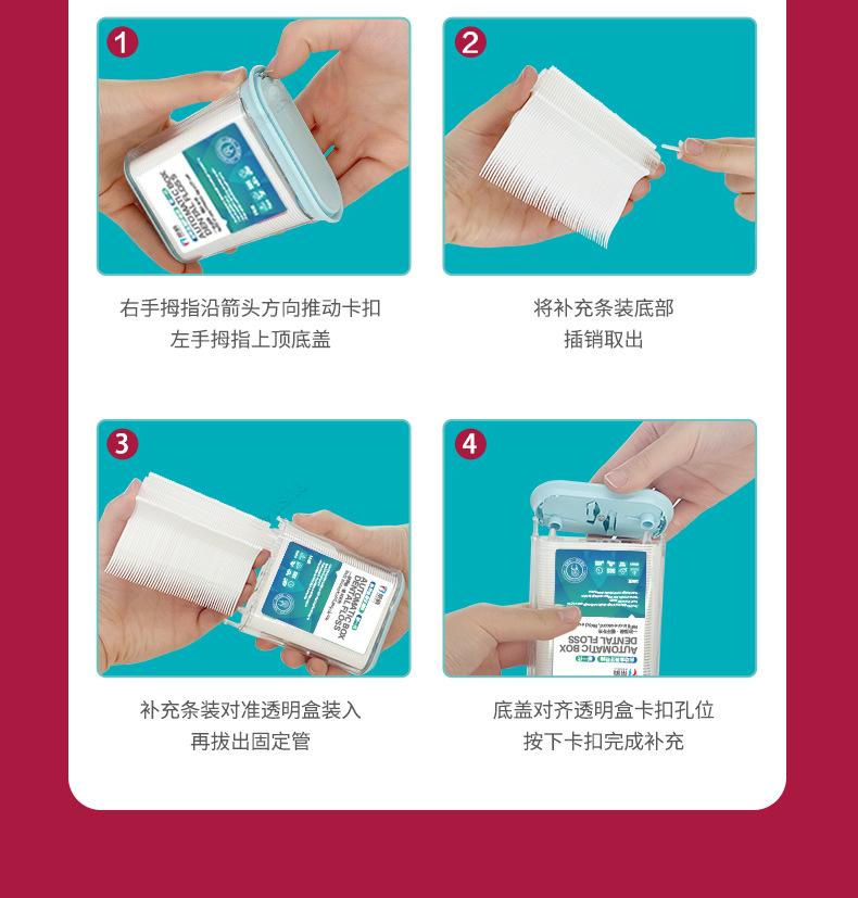 荣俏自动牙线盒家用一次性牙线棒高拉力塑料牙签盒装牙线
