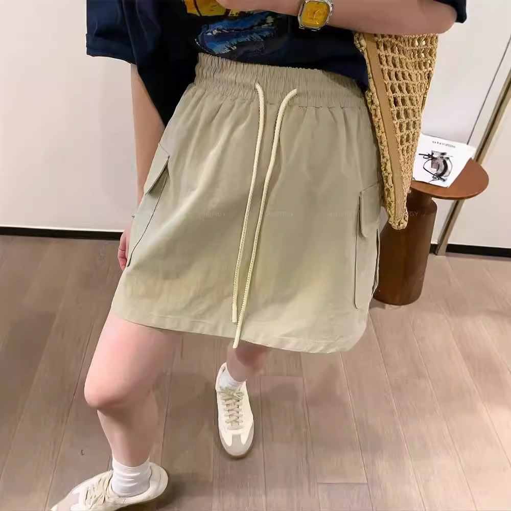 工装半身裙女2025夏季新款高腰抽绳大口袋包臀显瘦a字短裙子ins