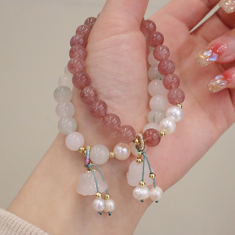 天然草莓晶水晶手链天山翠珍珠新中式气质手串闺蜜手饰铃兰花手串