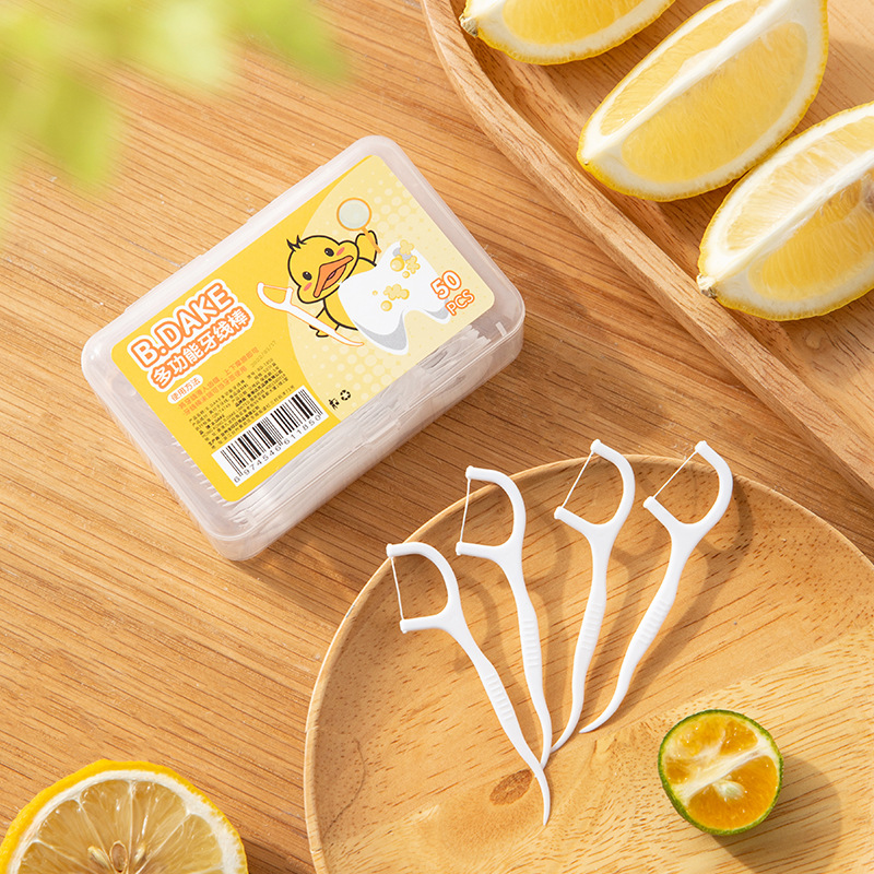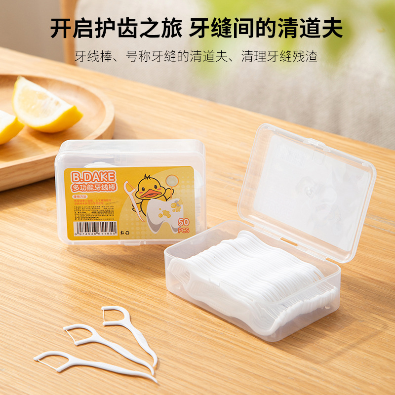 小黄鸭50支盒装牙签牙线一次性高分子细滑牙线棒牙签线牙线