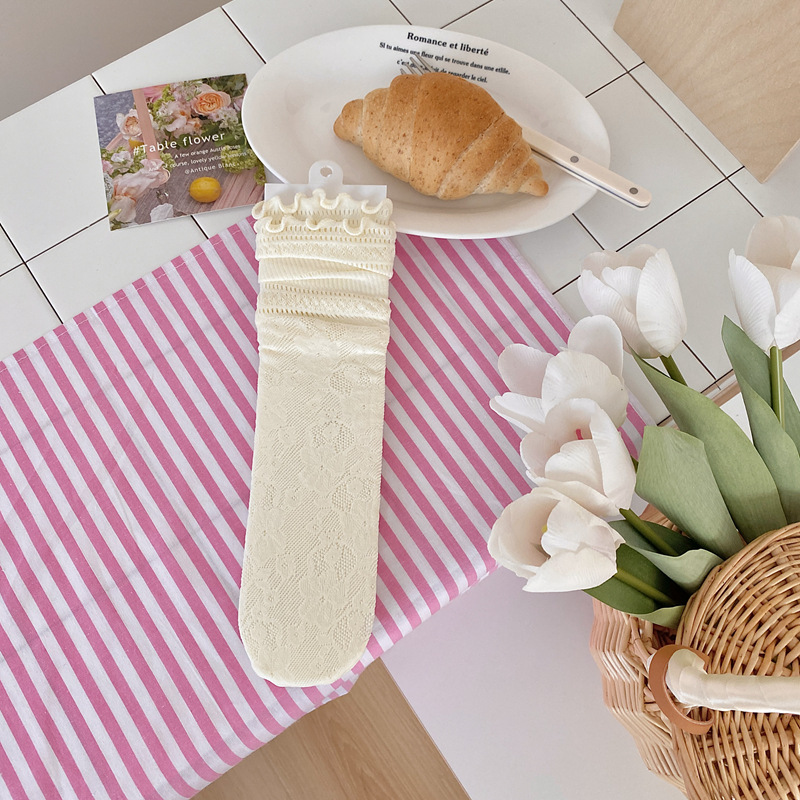 白色蕾丝袜子女洛丽塔小腿袜中筒袜jk花边日系lolita半腿长筒丝袜