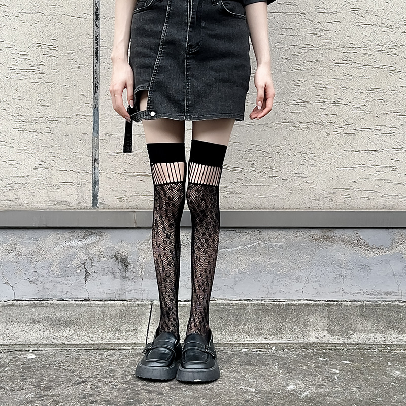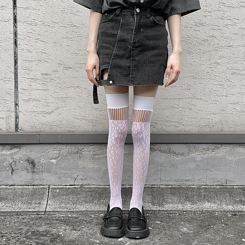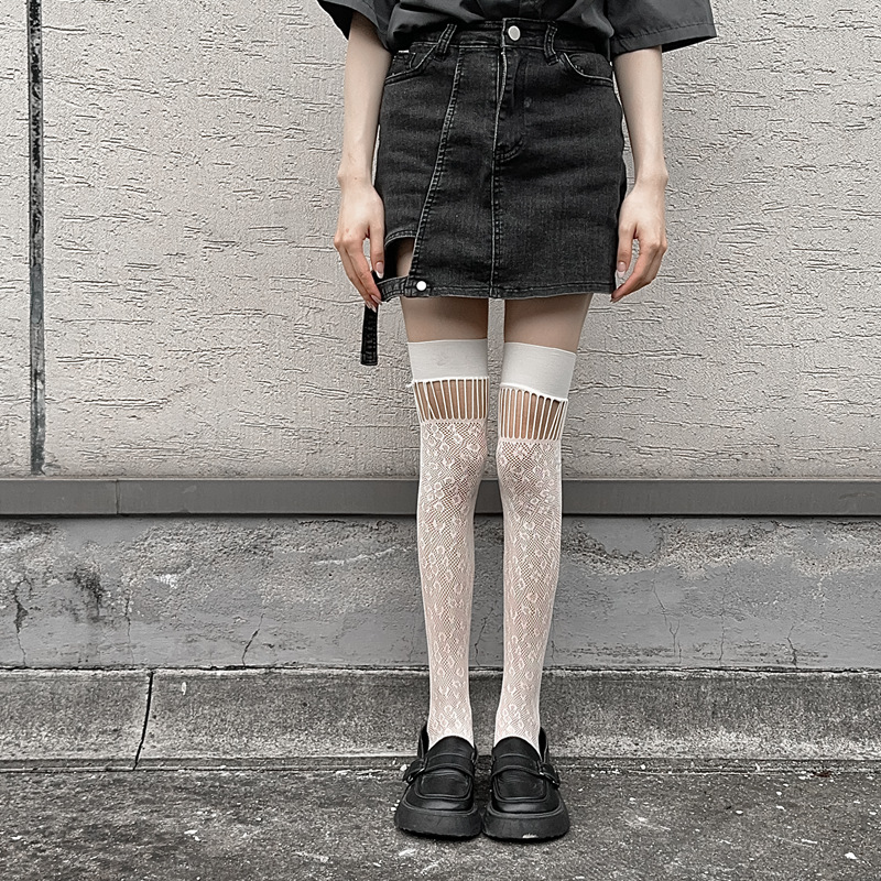网眼镂空ins潮袜女夏季薄款长筒过膝袜Lolita大腿袜子白色少女袜