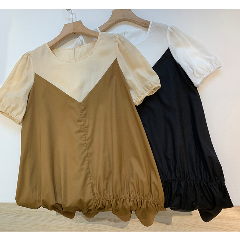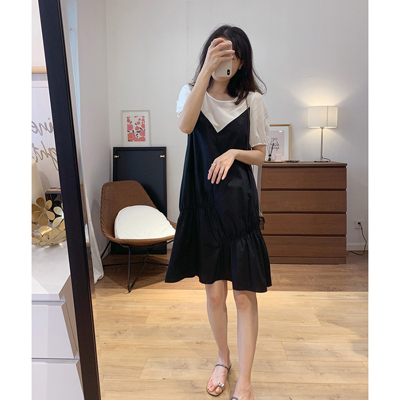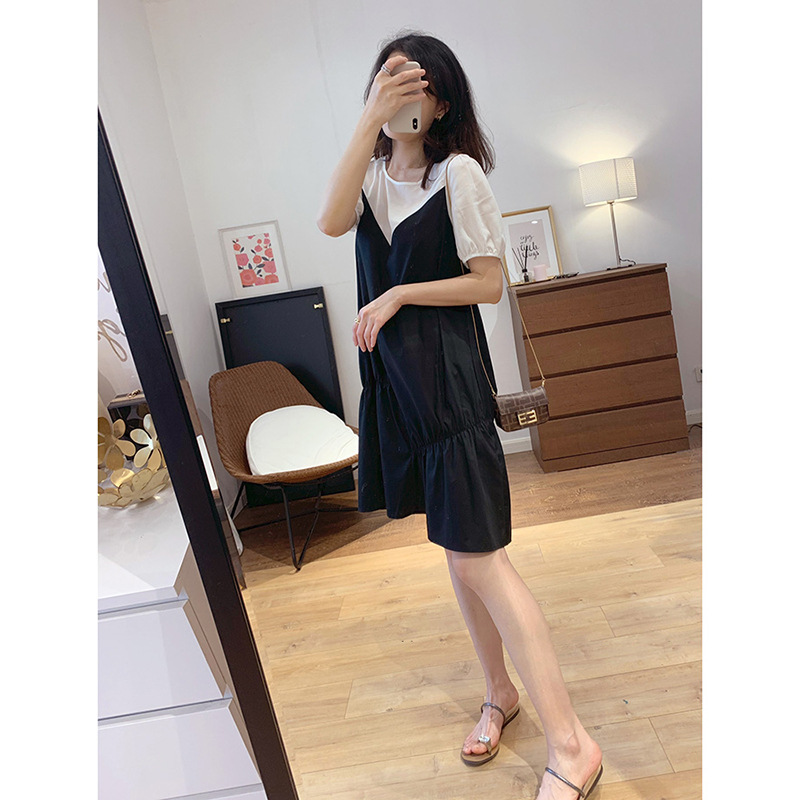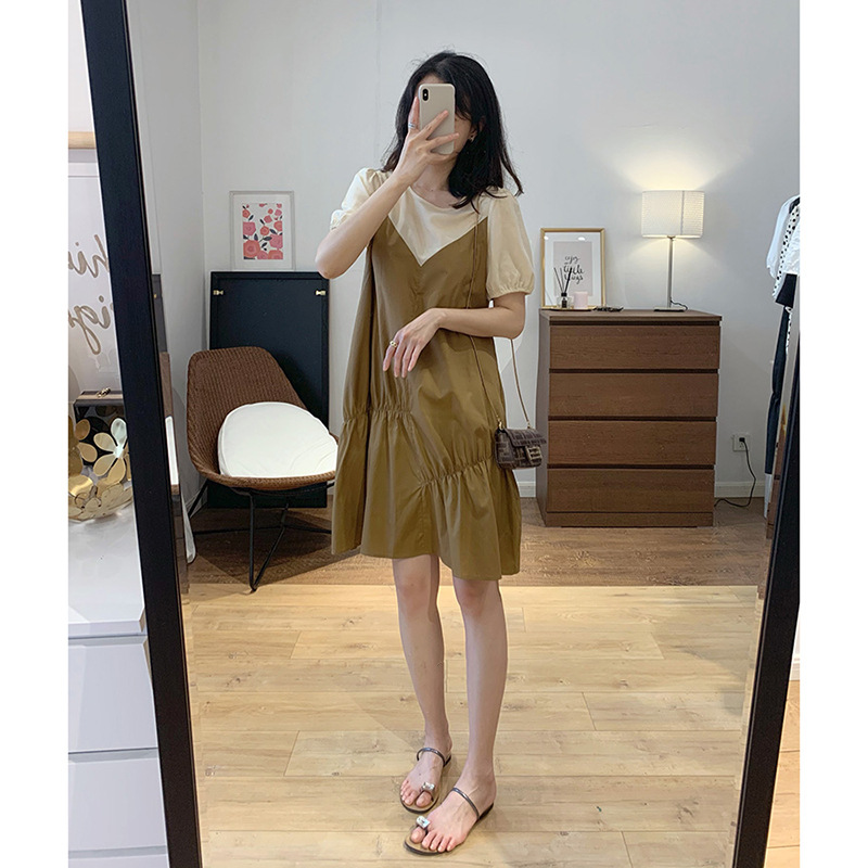 法式茶歇设计感森系小个子假两件圆领连衣裙子女夏季新款