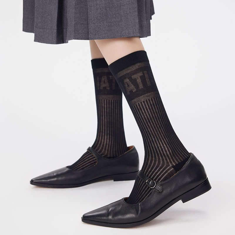 镂空网眼袜子女春夏薄款透气字母韩版堆堆袜日系运动长袜抽条女袜