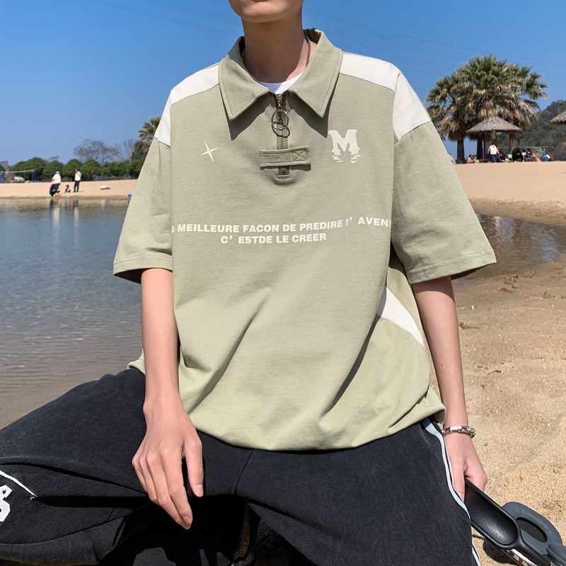 夏季新外景重磅短袖撞色港风大码短袖T恤男士拼接POLO衫休闲t