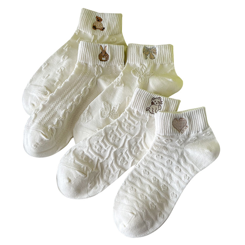 袜子女春夏季新款刺绣短筒女袜日系可爱卡通女短袜学生棉袜