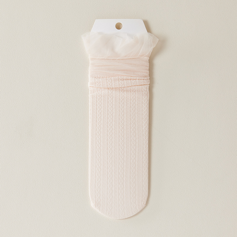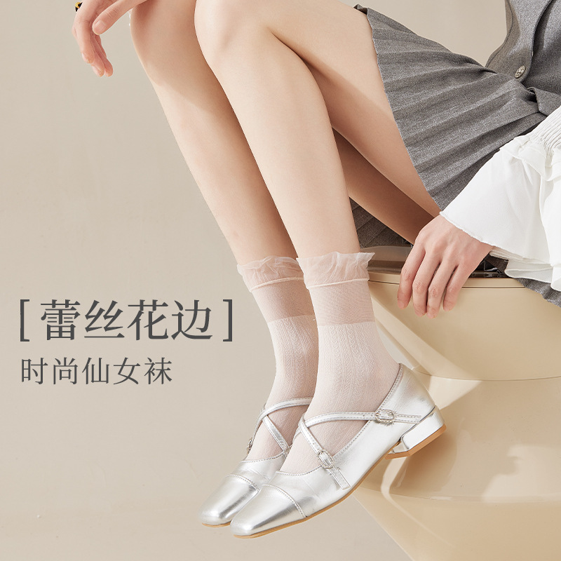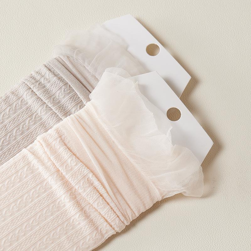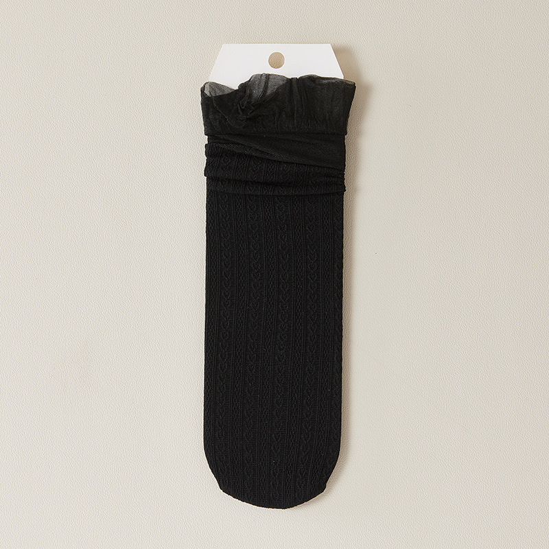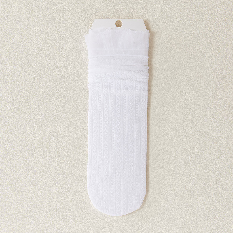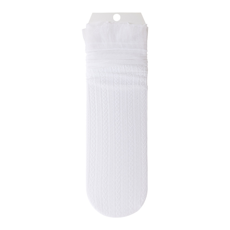 中筒袜子女纯棉夏季透气花边堆堆袜jk白色长袜洛丽塔蕾丝花边