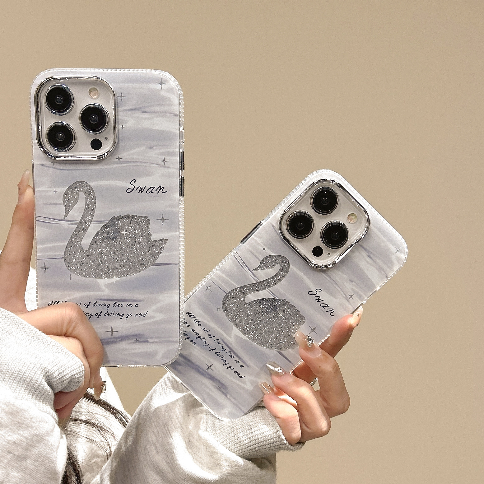 卡通ins闪粉白天鹅适用15promax手机壳14pro苹果13个性12/11防摔