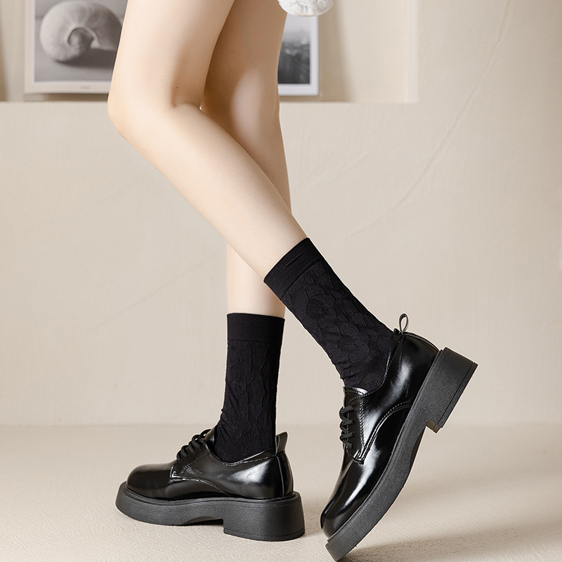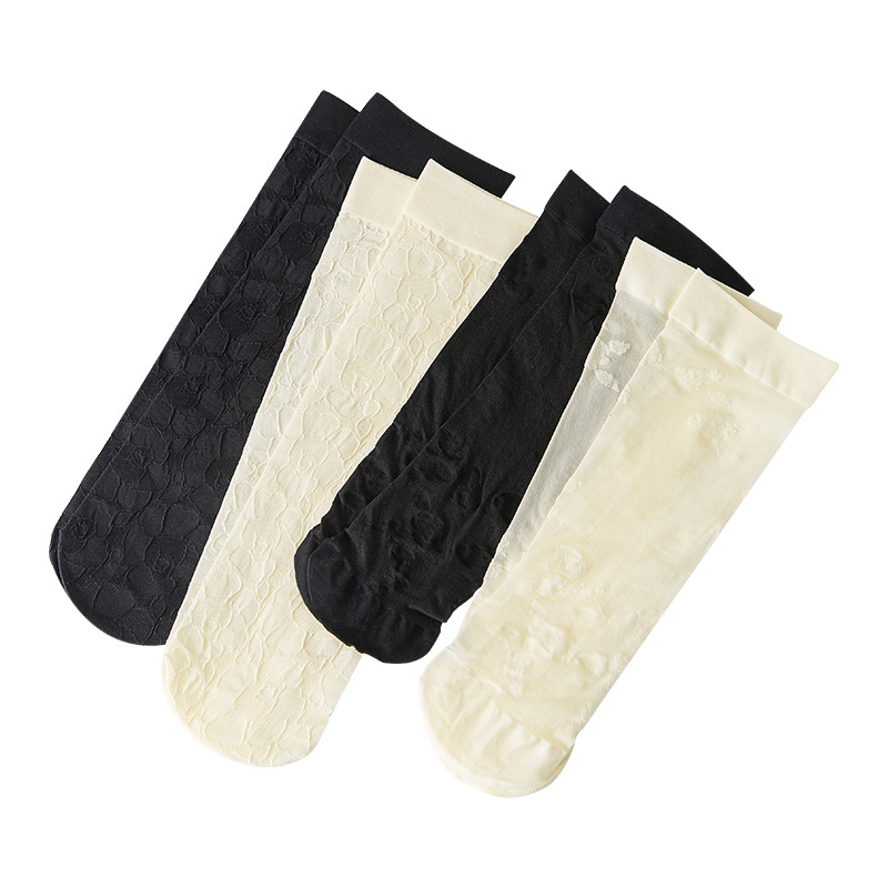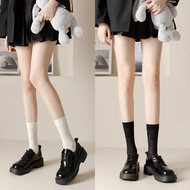 长袜子女春夏季薄款网眼透气女中筒袜黑色日系JK风夏天棉袜