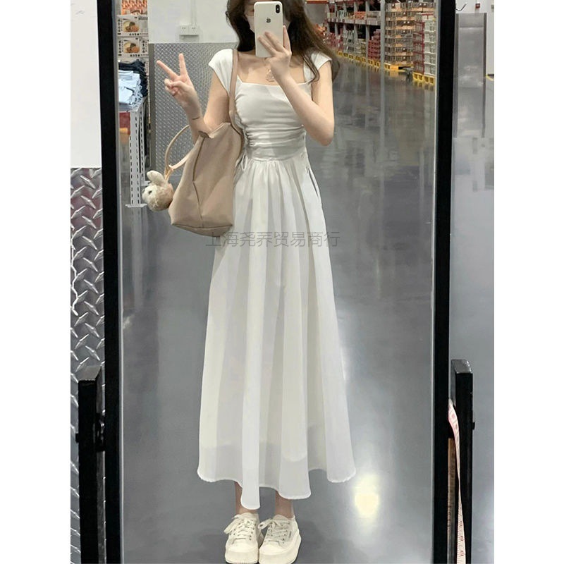 年新款夏季茶歇法式高级感气质收腰显瘦长裙白色初恋连衣裙子小众