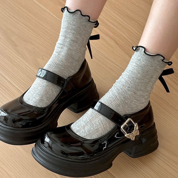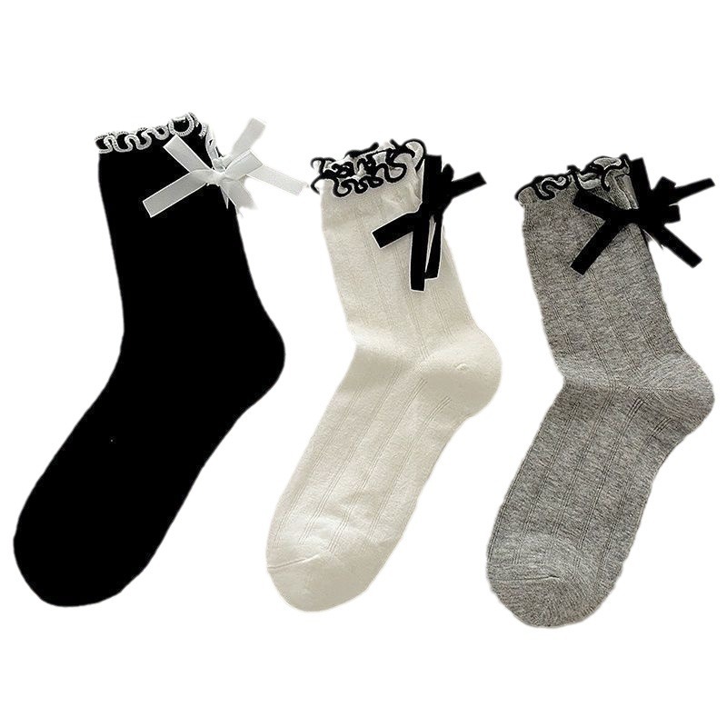 蝴蝶结袜子女春夏款棉袜中筒袜学生日系jk花边长筒袜配小皮鞋夏季