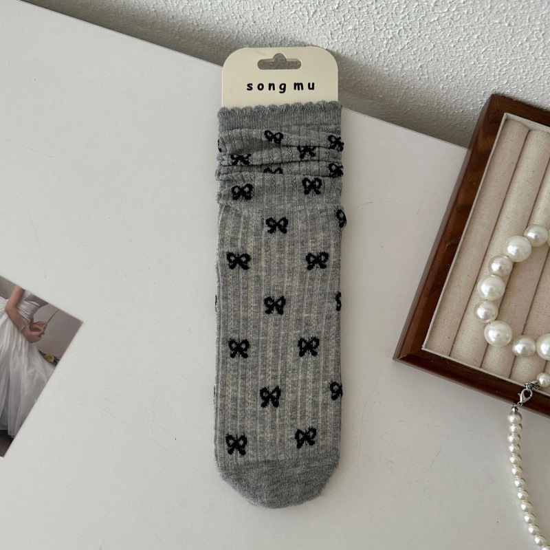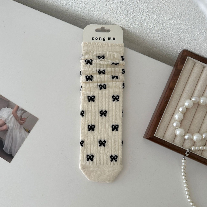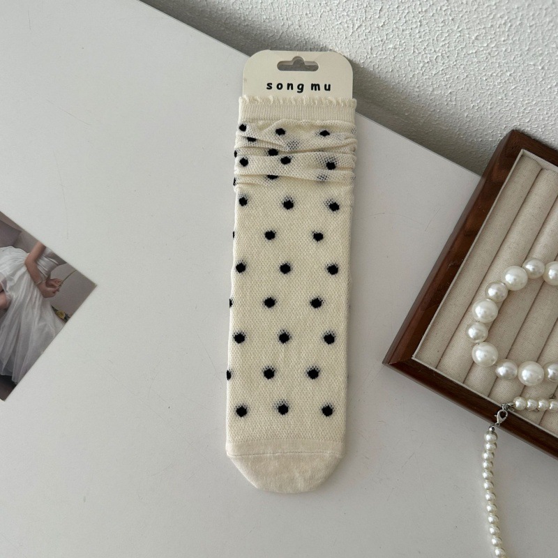 袜子女中筒袜春夏季薄款网眼透气少女jk袜洛丽塔波点蝴蝶结堆堆袜