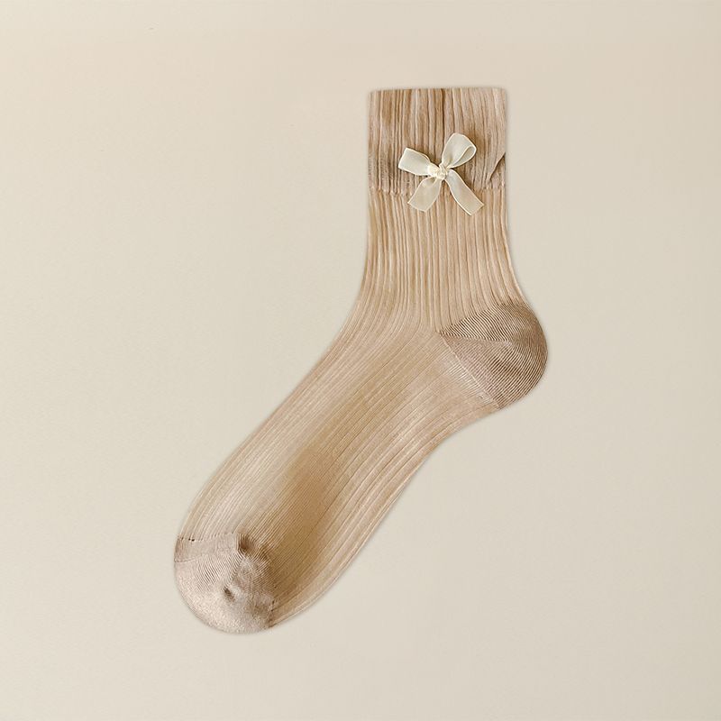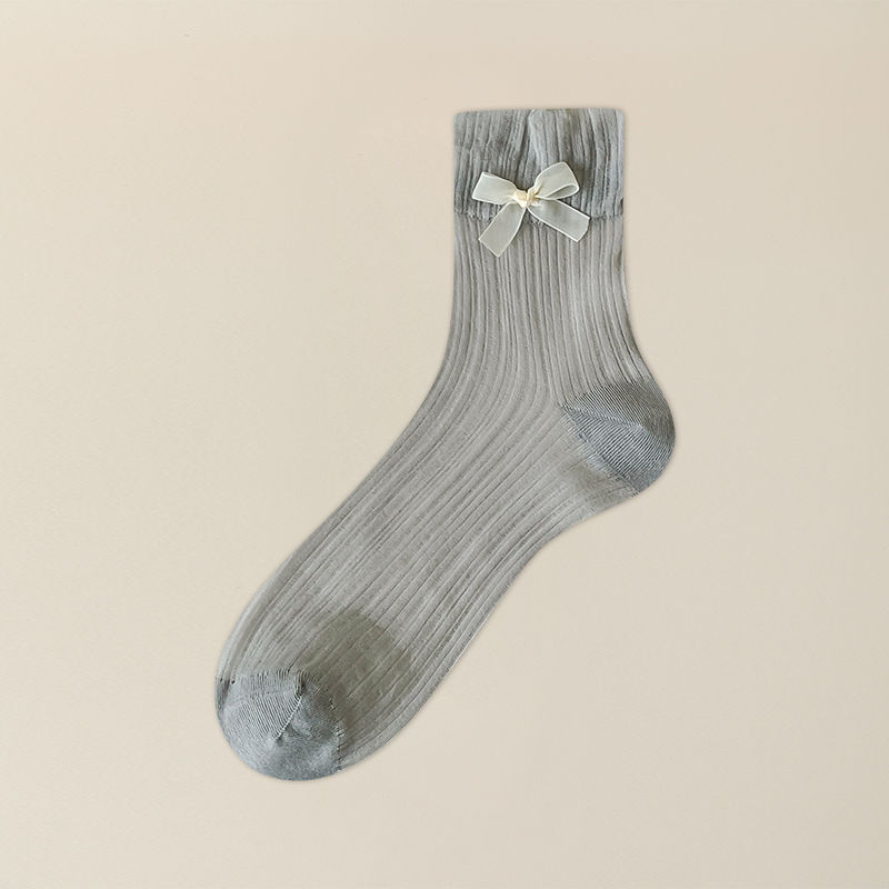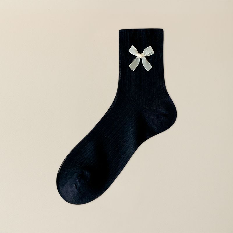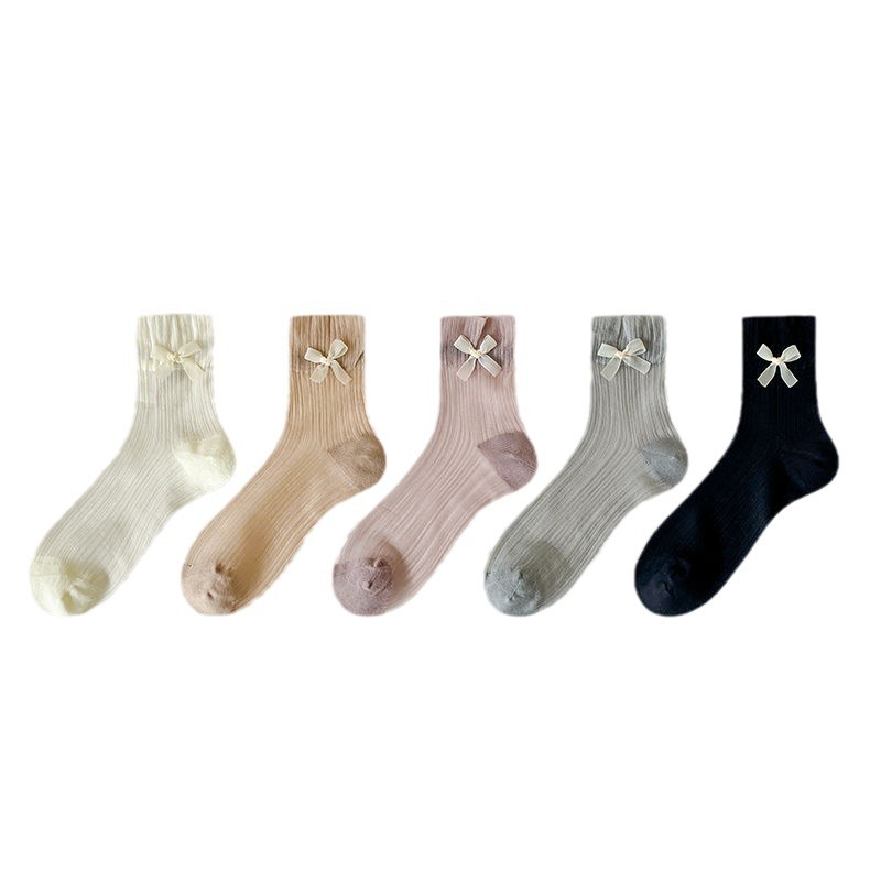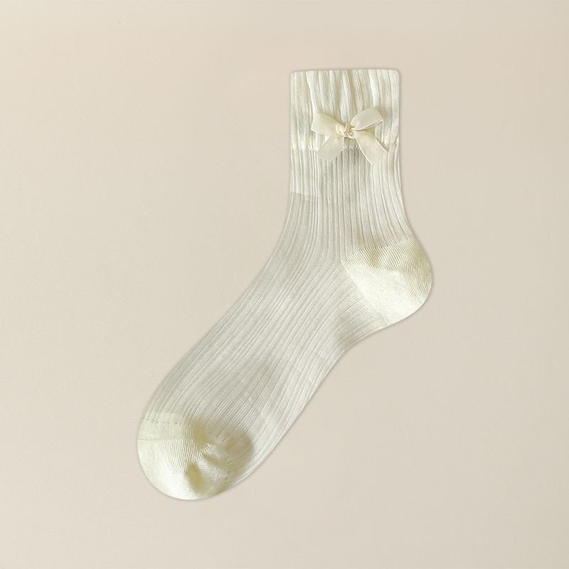袜子女春夏季超薄蝴蝶结女袜白色仙女中筒丝袜花边甜美薄款袜子