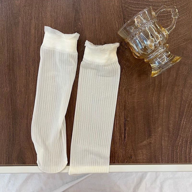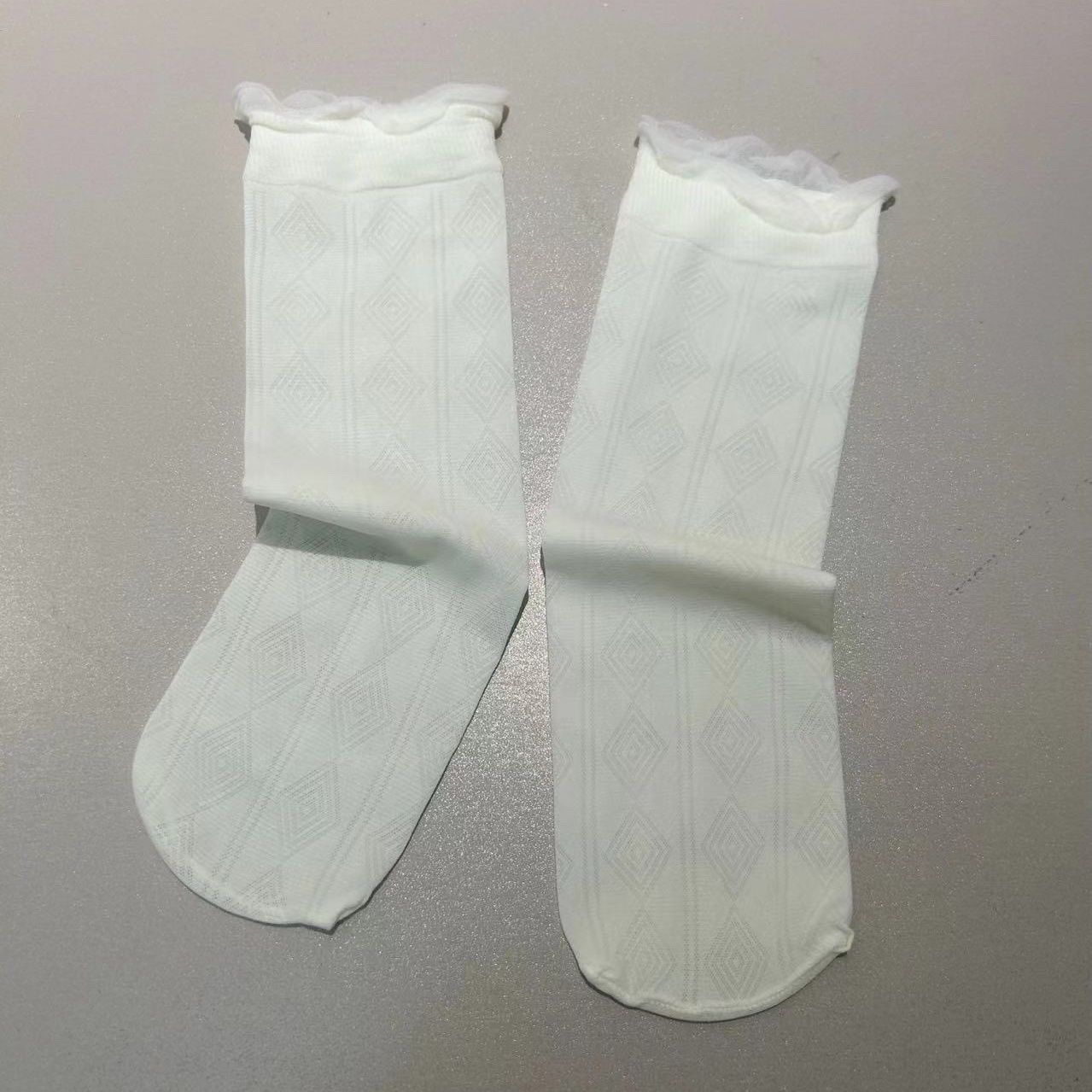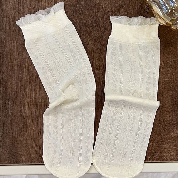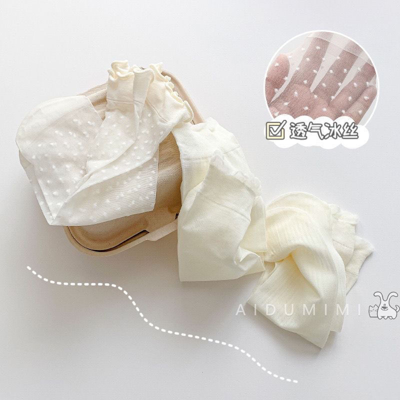 超薄透气冰丝花边袜子女款透气网眼堆堆袜可爱百搭无跟袜少女薄袜