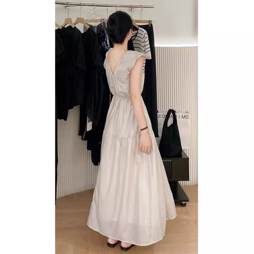 法式赫本风气质收腰连衣裙子女夏季新款设计感别致露背长裙