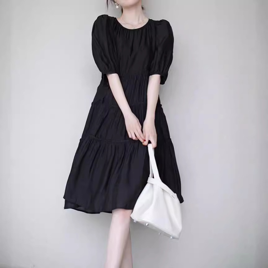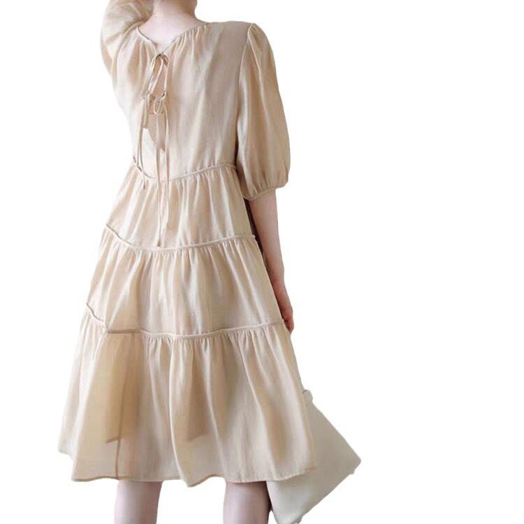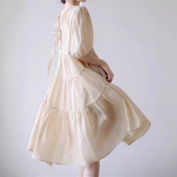 新款夏季女装法式轻奢气质御姐风炸街a字裙香槟色宽松连衣裙