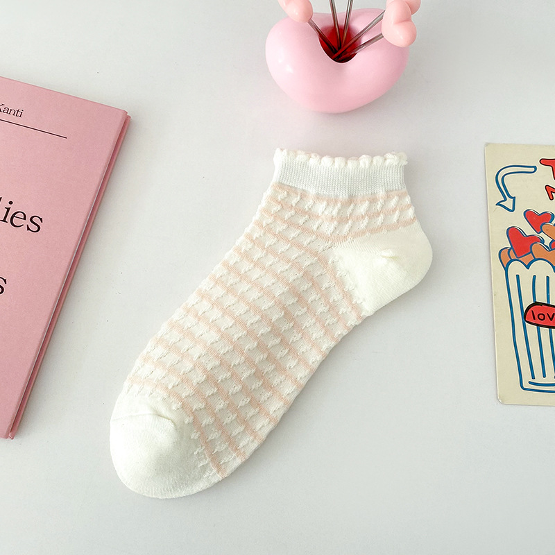 袜子女春夏学院风女士船袜夏天薄款粉色系短筒条纹短袜棉质拼色袜