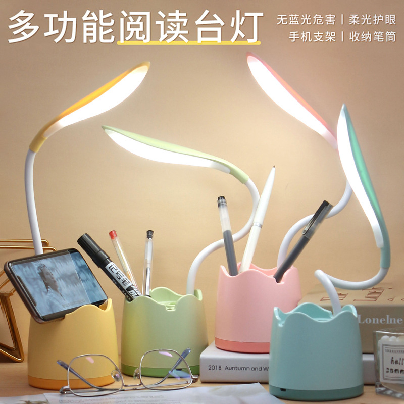 柔光护眼多功能阅读台灯无蓝光手机支架台灯宿舍卧室创意笔筒台灯