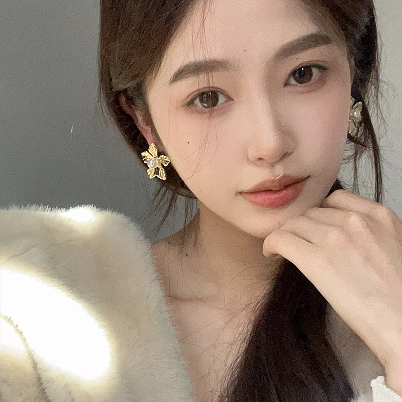 简约气质金属花朵珍珠耳钉小众高级感百搭耳环新款网红耳饰