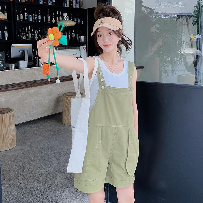 工装背带裤女夏季薄款高腰显瘦休闲宽松直筒百搭减龄小个子短裤子