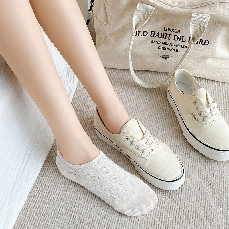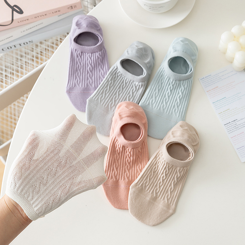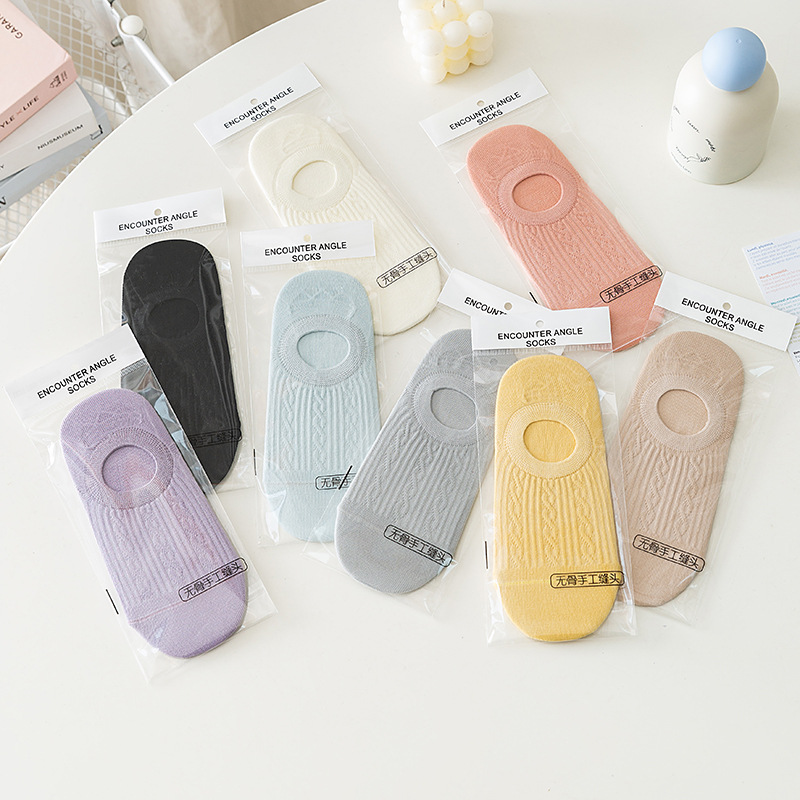 夏天简约纯色隐形船袜无骨短筒麻花女袜独立包装女袜硅胶防滑棉袜