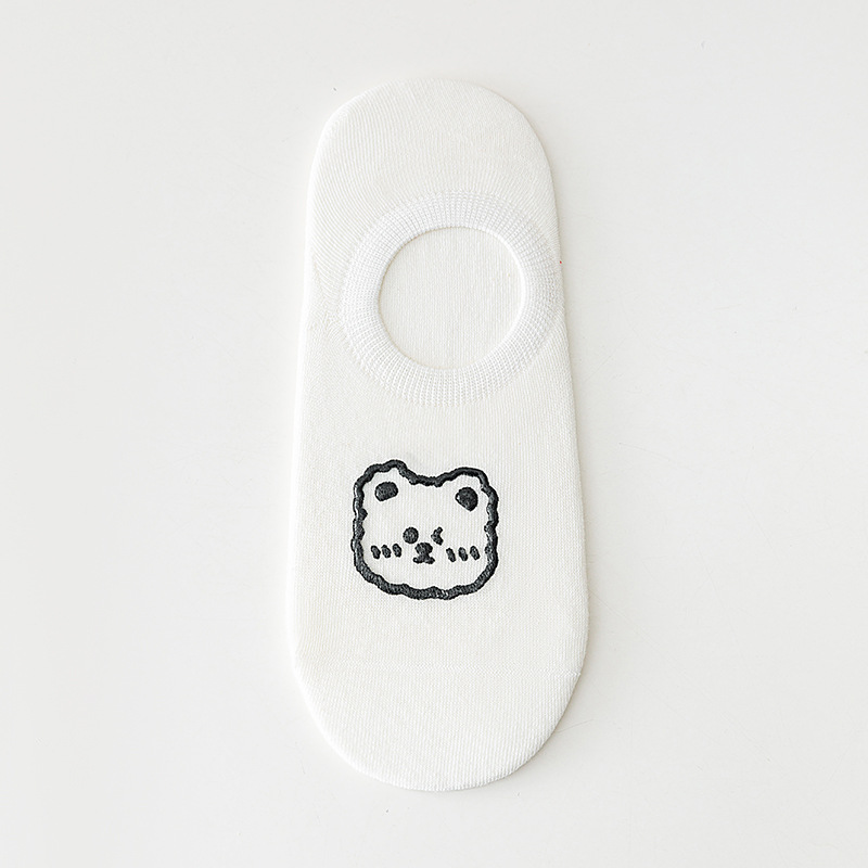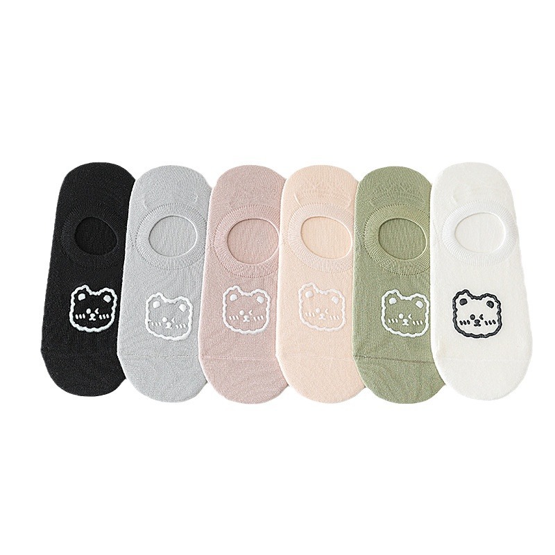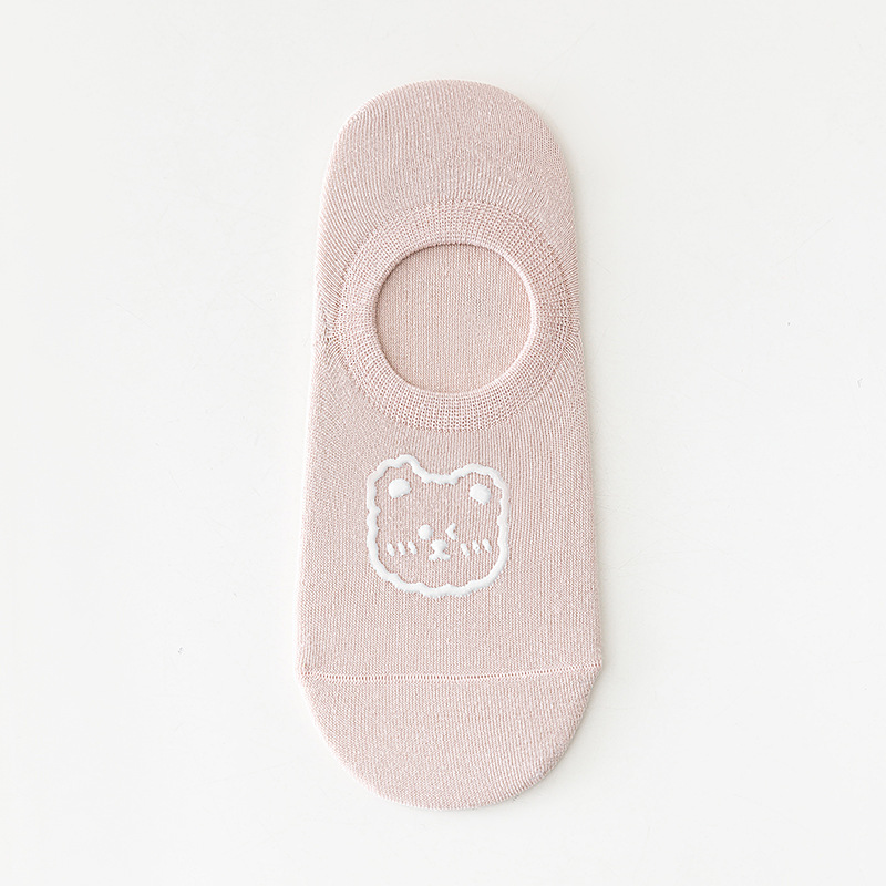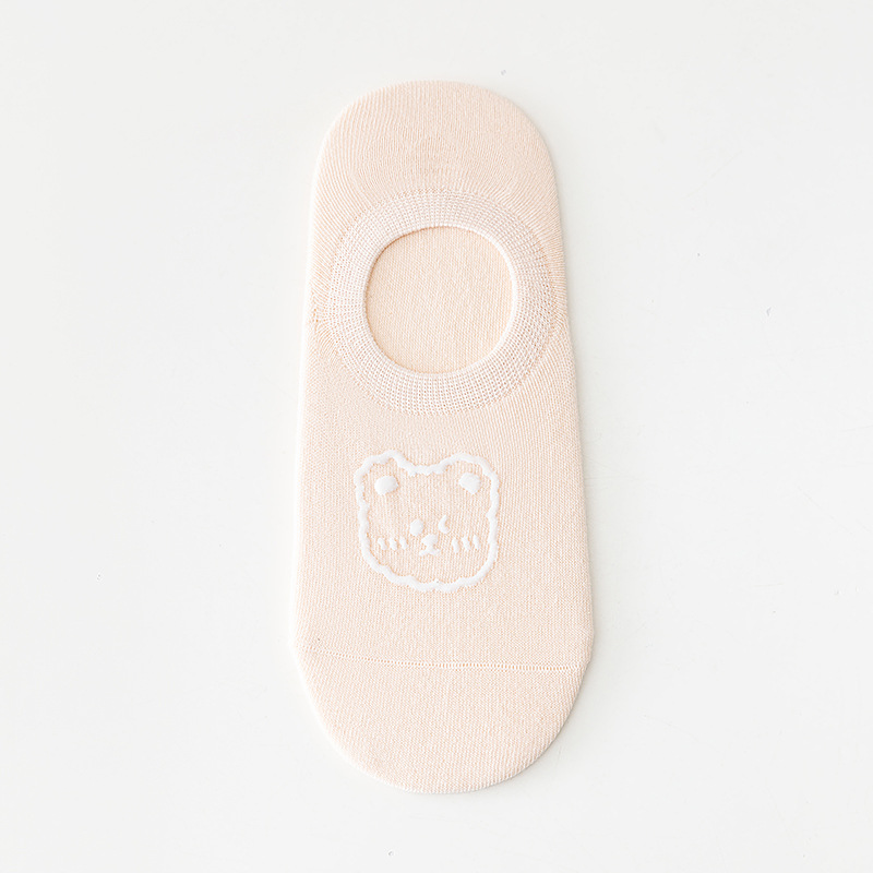 袜子女烫印小熊隐形女袜独立包装卡通短袜硅胶防滑女生无骨棉袜子