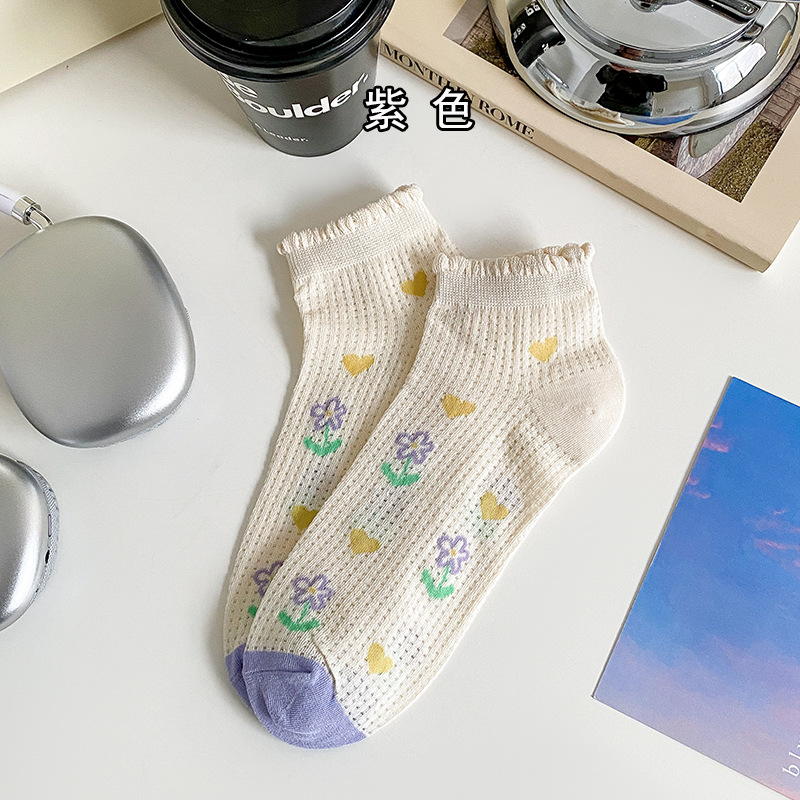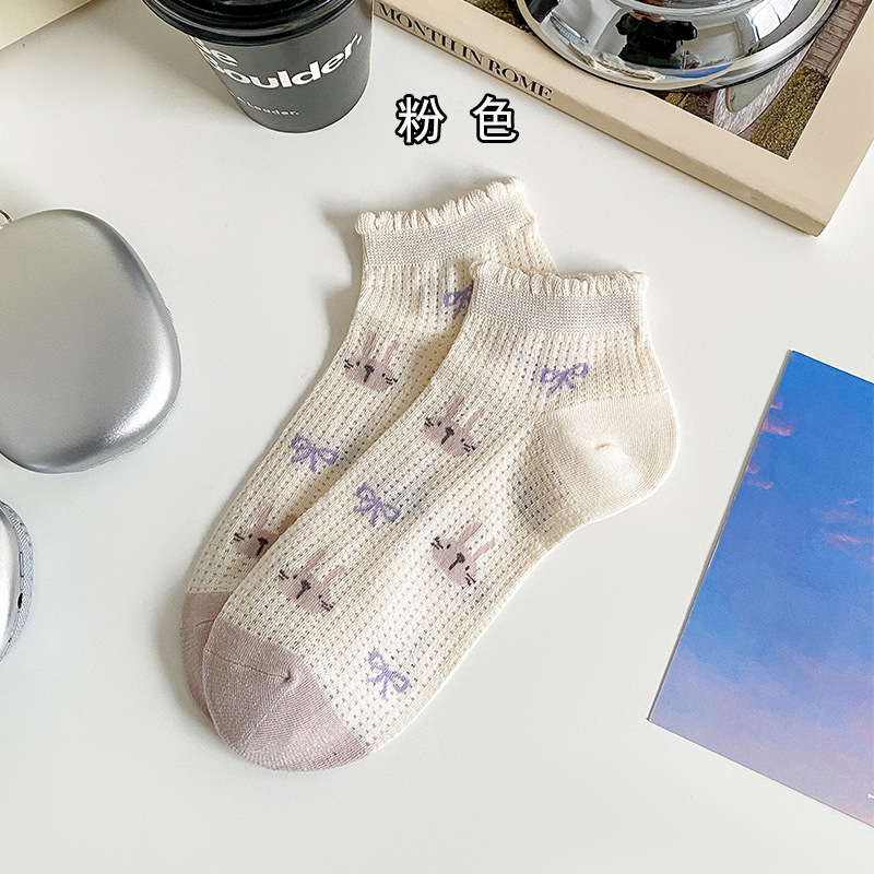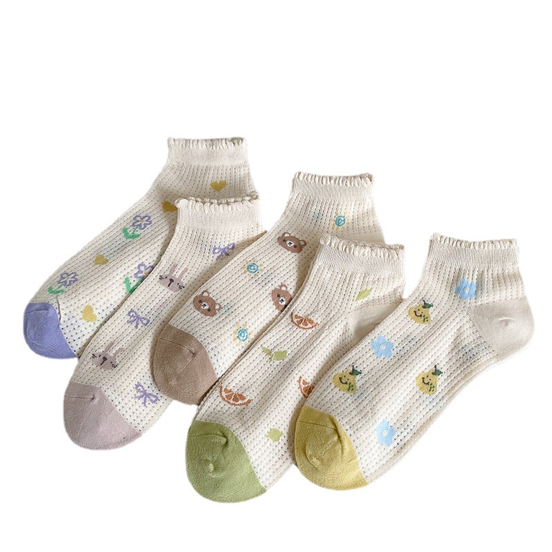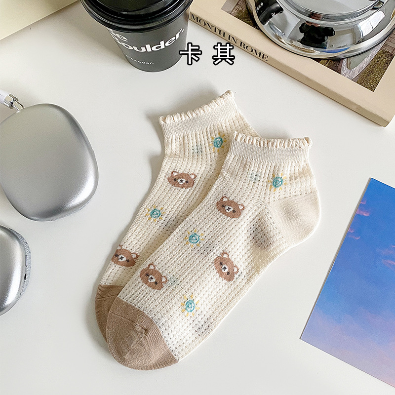 袜子女春夏季木耳边船袜女夏季薄款短筒女袜网眼透气短袜卡通棉袜