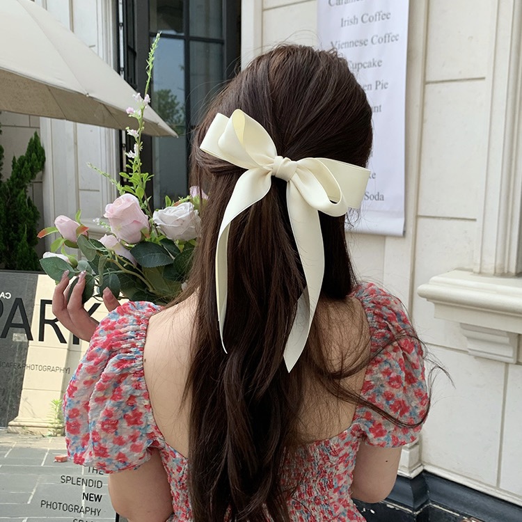 少女私藏百搭蝴蝶结飘带发夹奶油白色气质高级感弹簧夹半扎发发饰