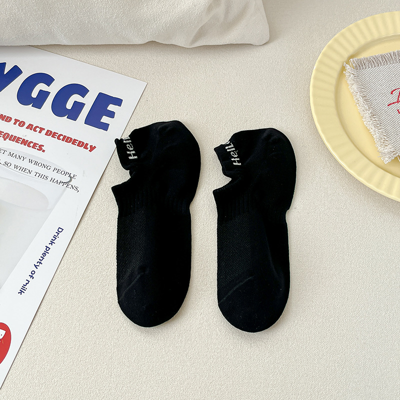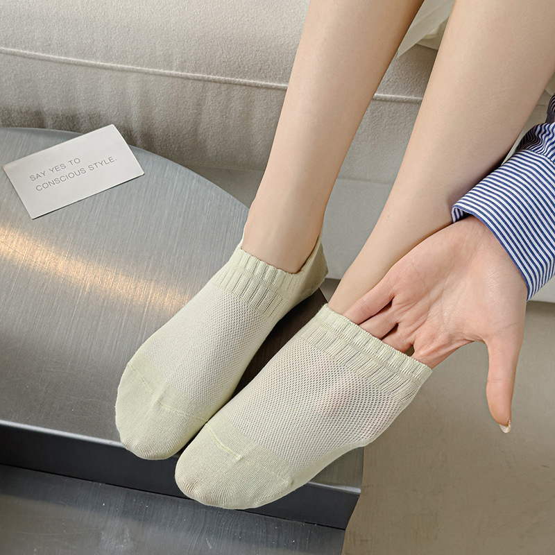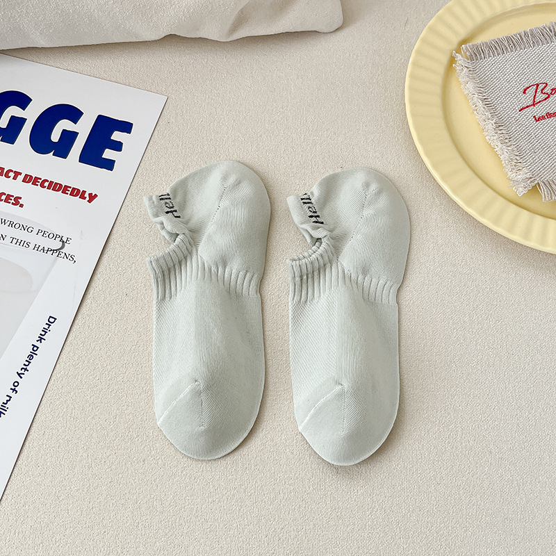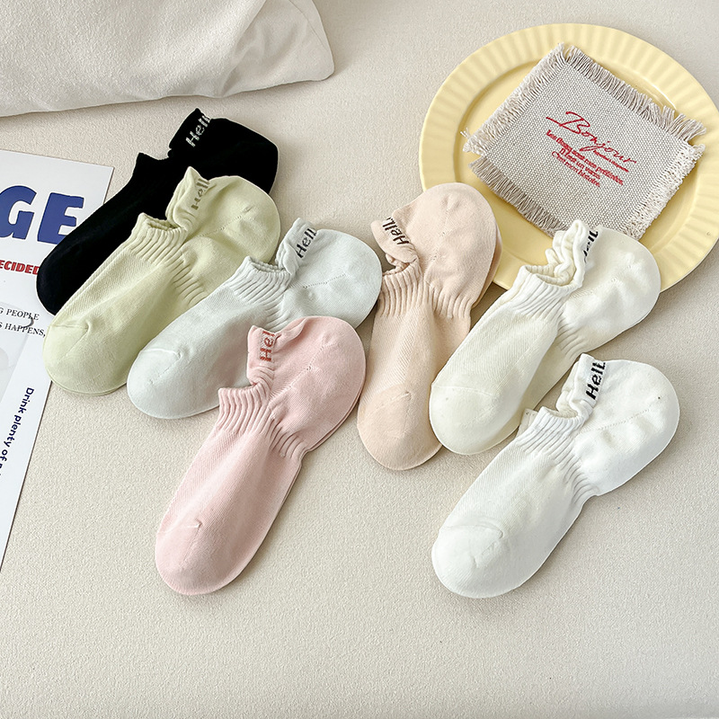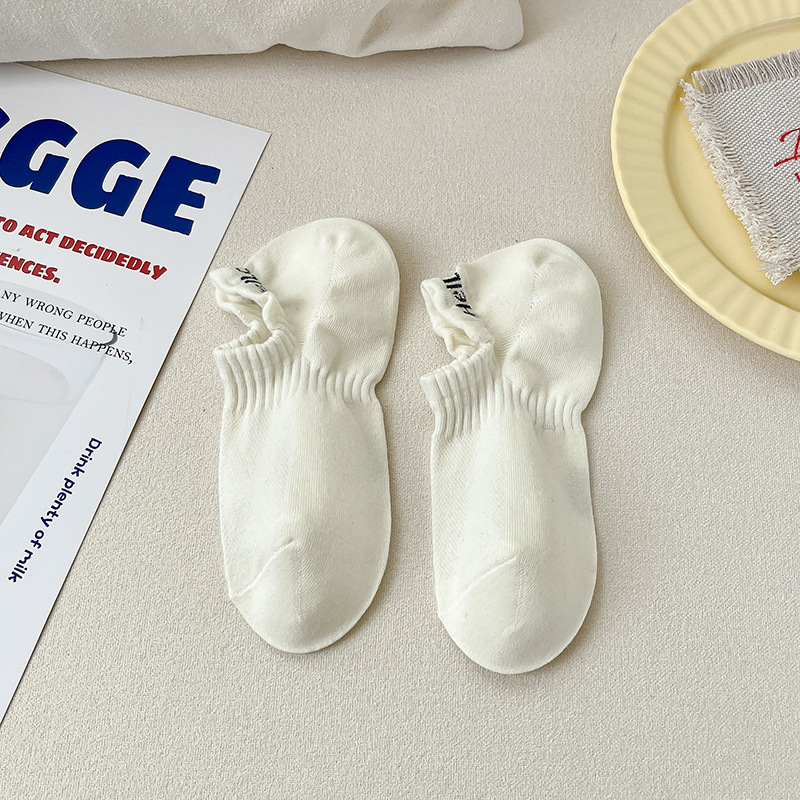 夏天简约袜子女糖果色网眼女生船袜简约纯色短筒棉袜提耳字母女袜