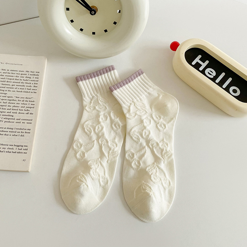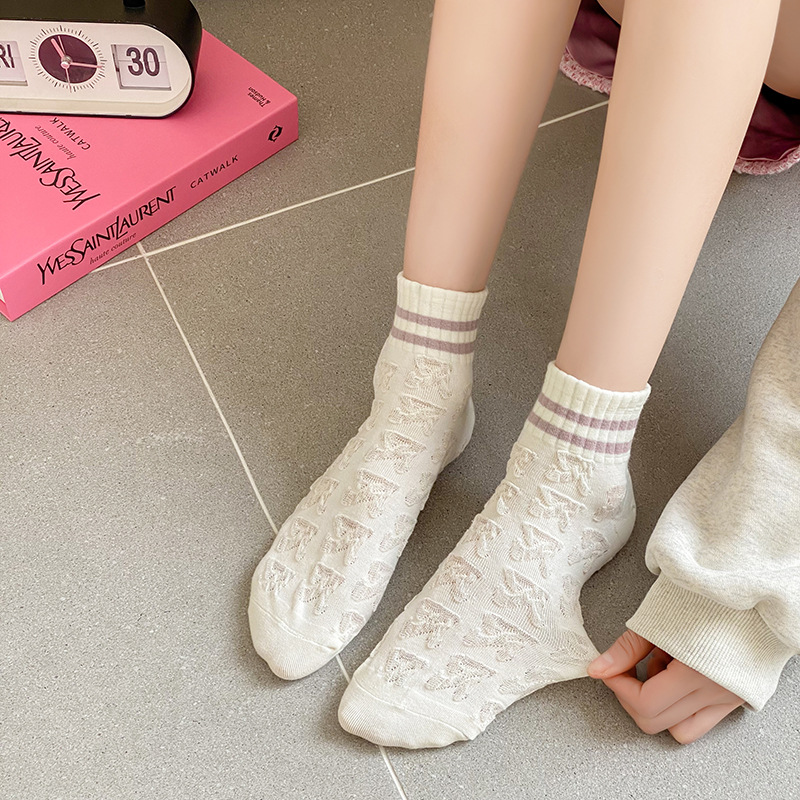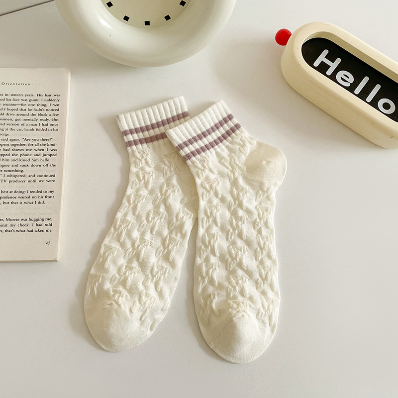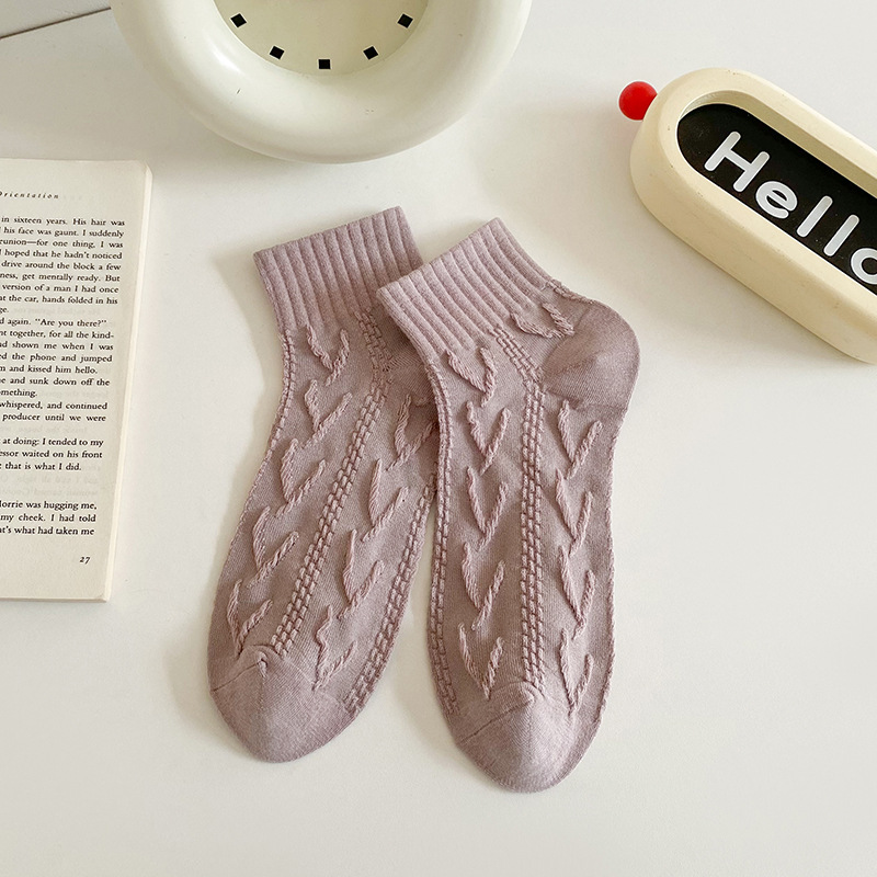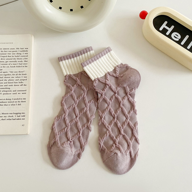 袜子女春夏香芋紫短袜潮流菱形短筒棉袜夏季休闲小白袜女生船袜子