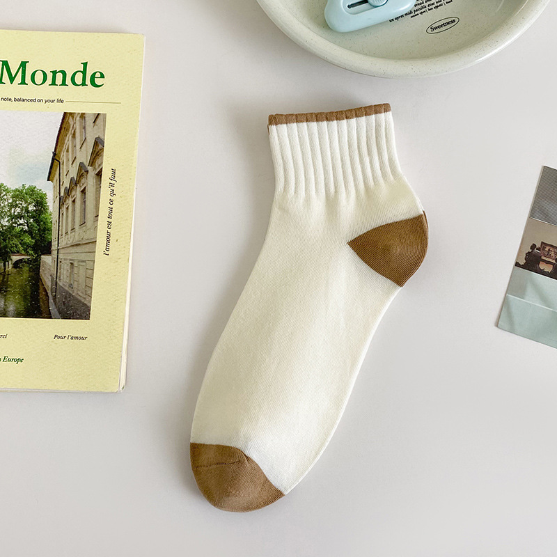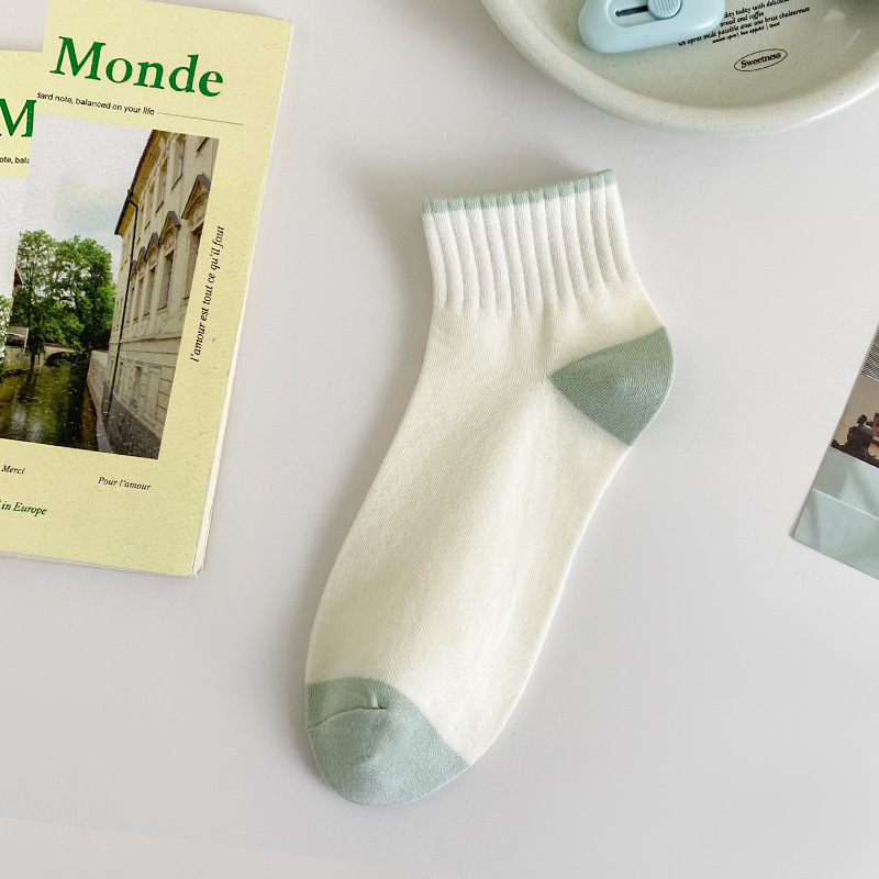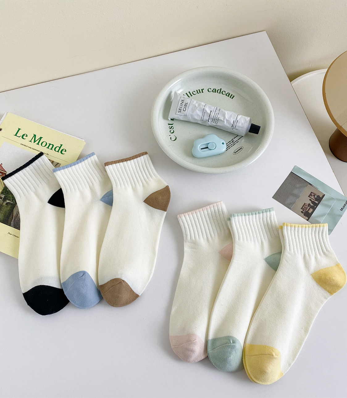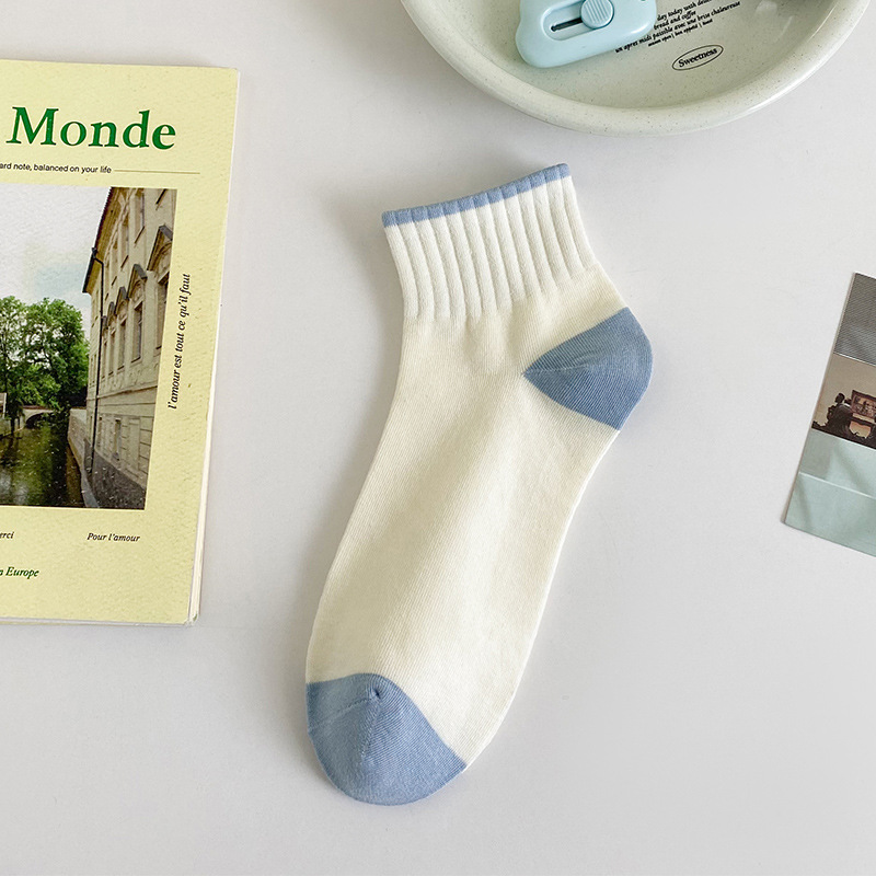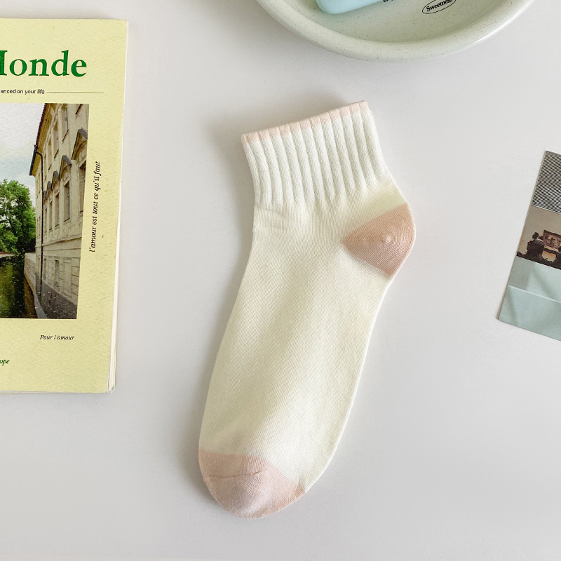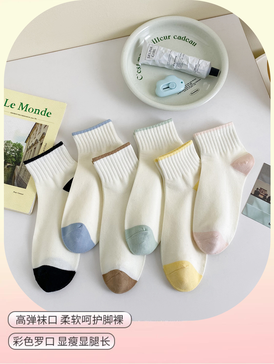 袜子女春夏糖果色短筒女袜潮流头跟拼色女生船袜夏季白色短袜子棉