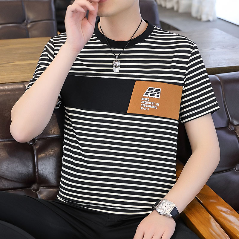 新款条纹短袖男T恤夏季潮流休闲薄款透气青年半袖短袖男t恤