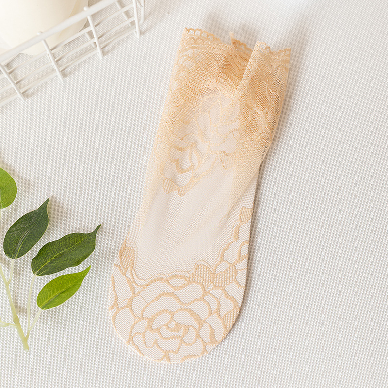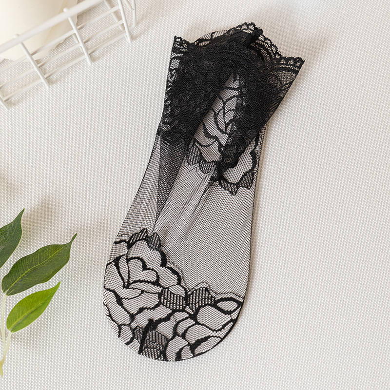 蕾丝花边袜子女中筒袜夏季薄款镂空网眼短袜百搭不掉跟短筒冰丝袜