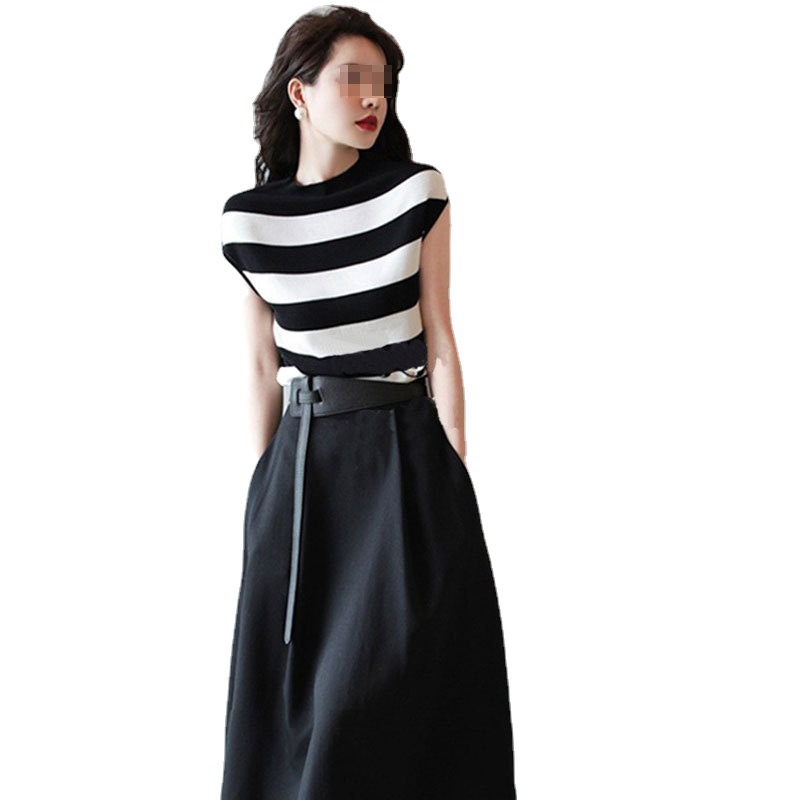 黑白条纹针织套装女夏季新款气质职业时尚职业通勤裙子两件套