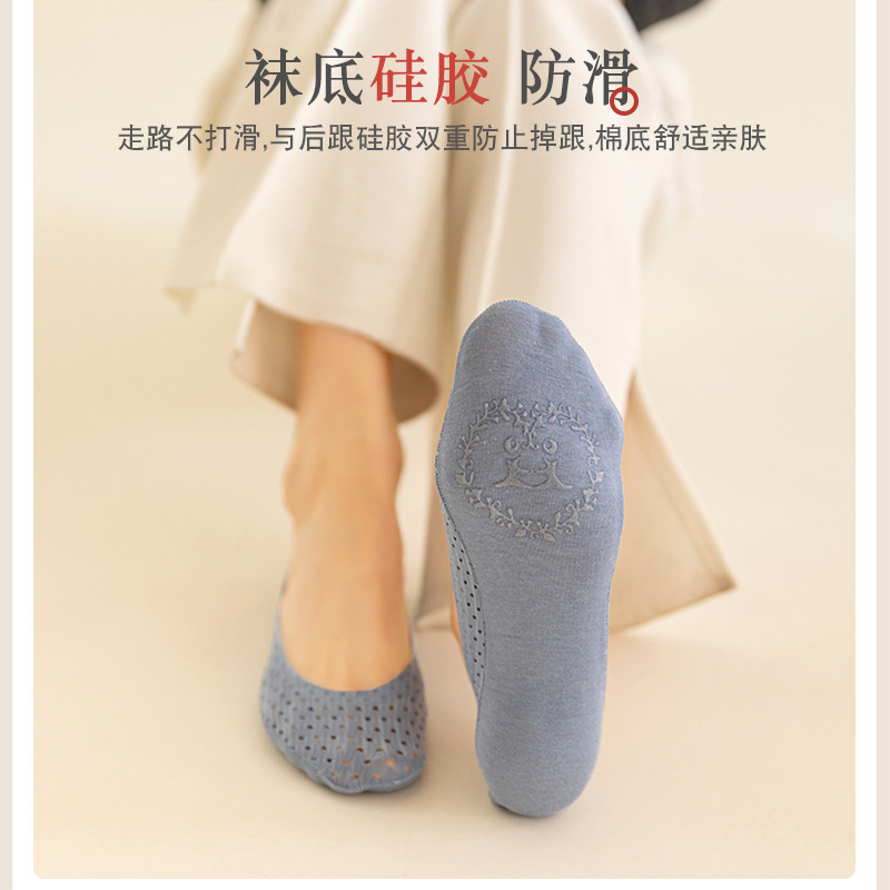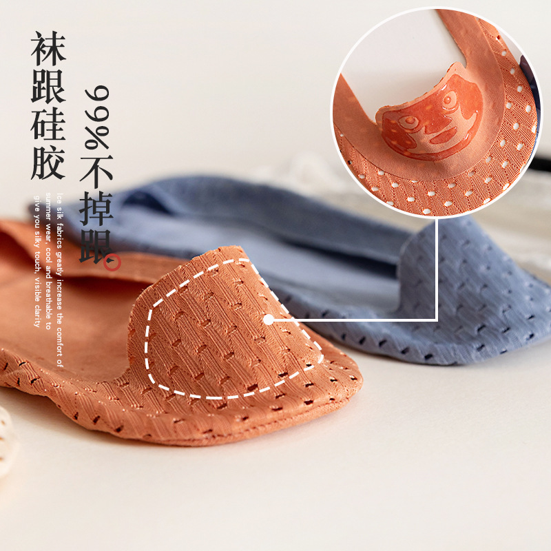 糖果色袜子女隐形袜网孔透气后跟硅胶不掉跟短袜防滑冰丝船袜