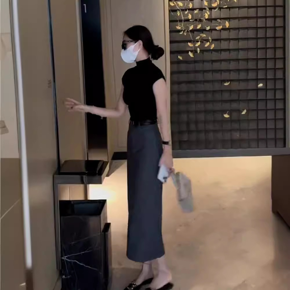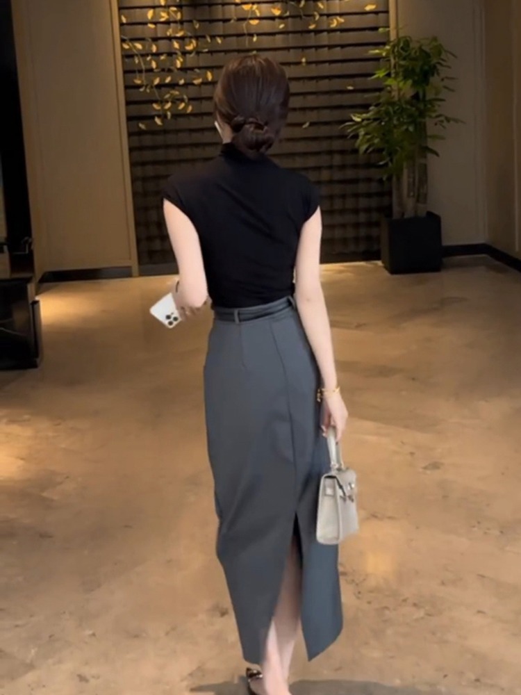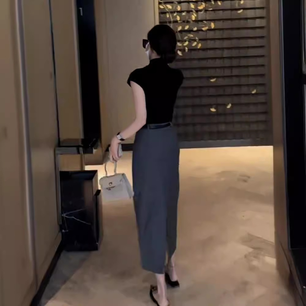 气质通勤御姐风别致两件套年夏季温柔淑女高领上衣半身裙套装