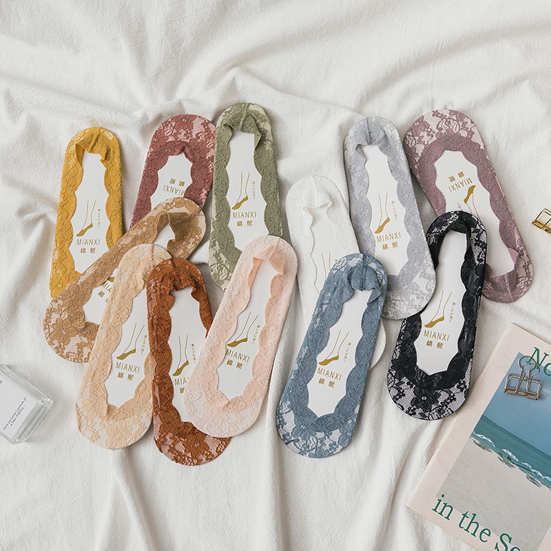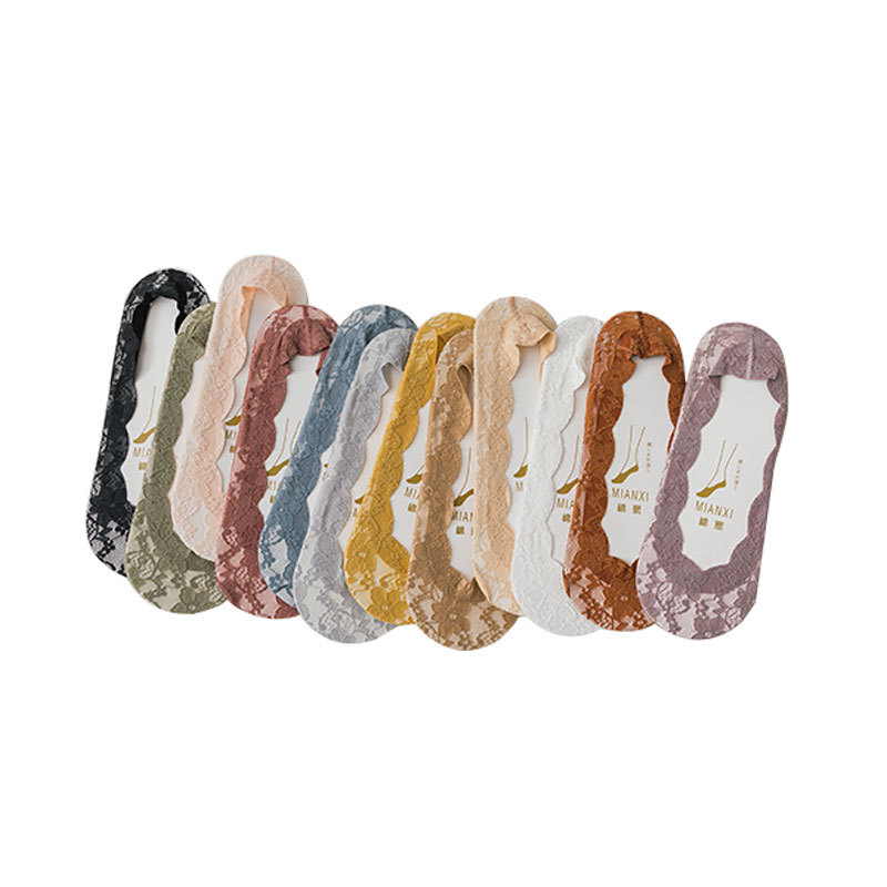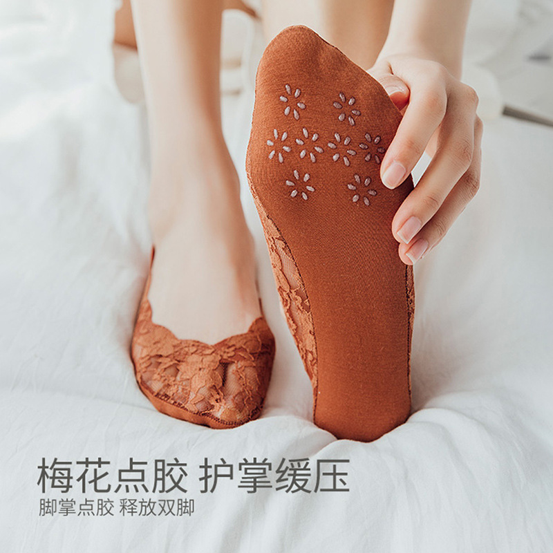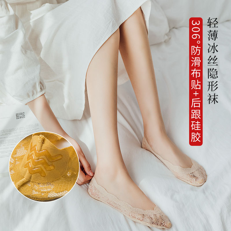 春夏蕾丝船袜女低帮浅口隐形袜女士百搭不掉跟硅胶防滑透气冰丝袜