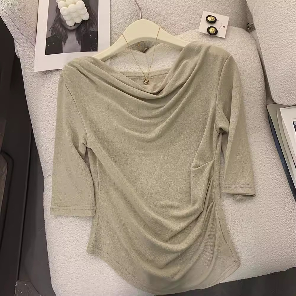 春夏新款交叉褶皱性感V领运动短袖修身显瘦收腰健身瑜伽服舞蹈服